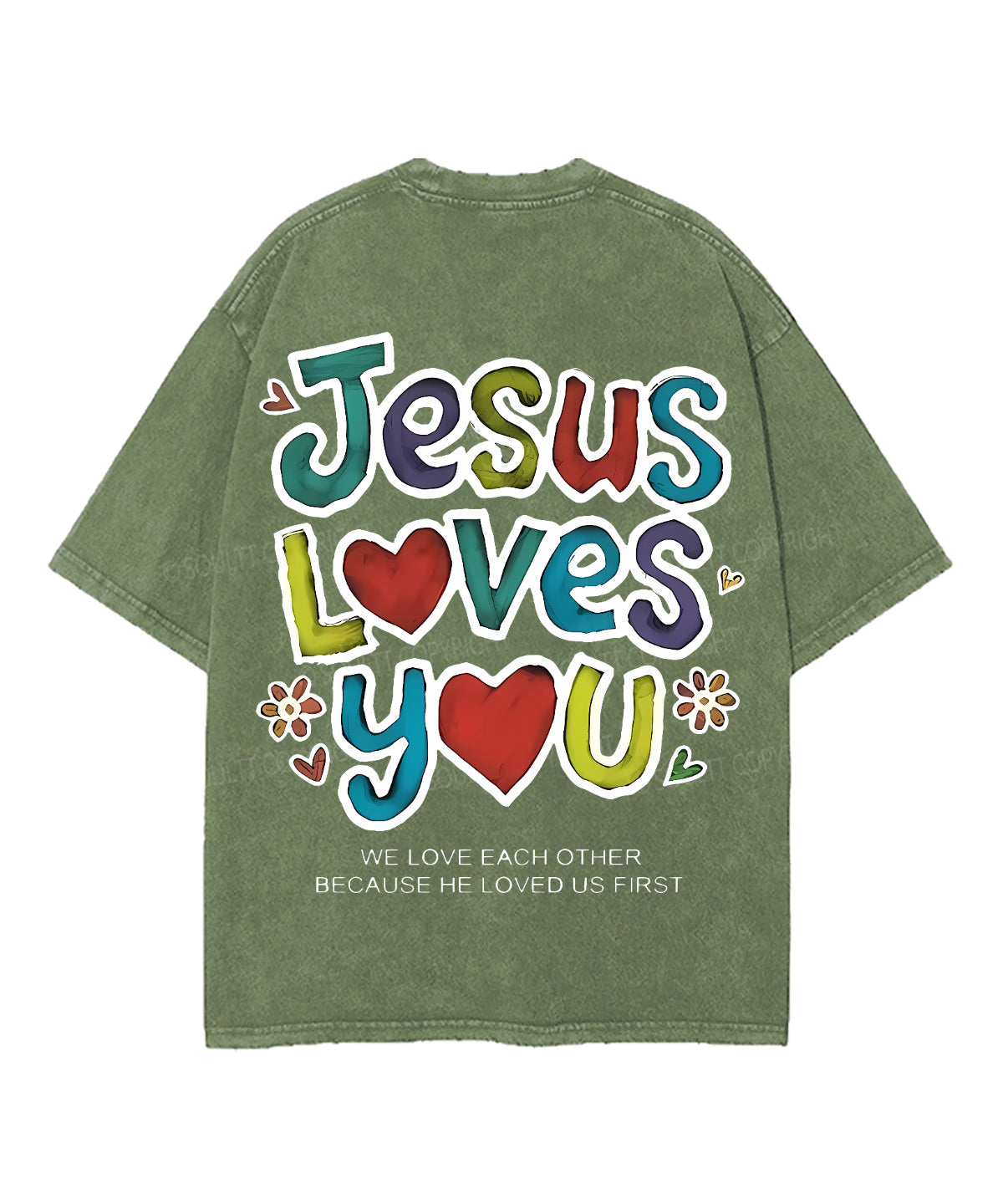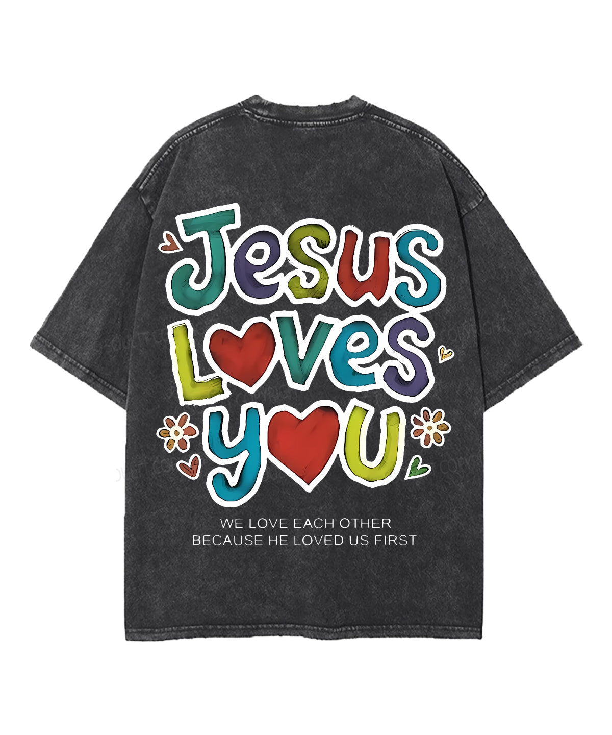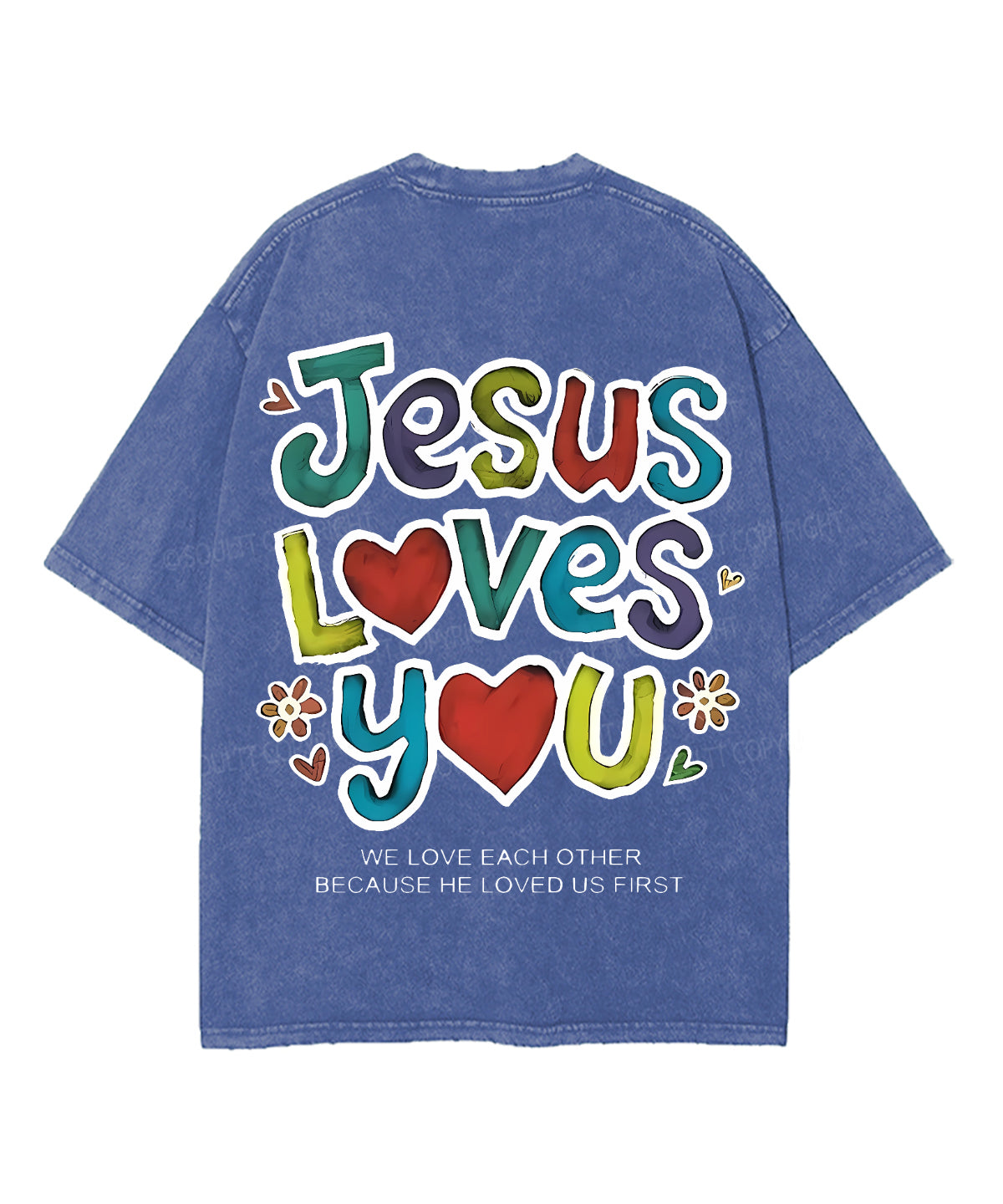Jesus Loves You Double Sided Unisex Washed Christian T-shirt