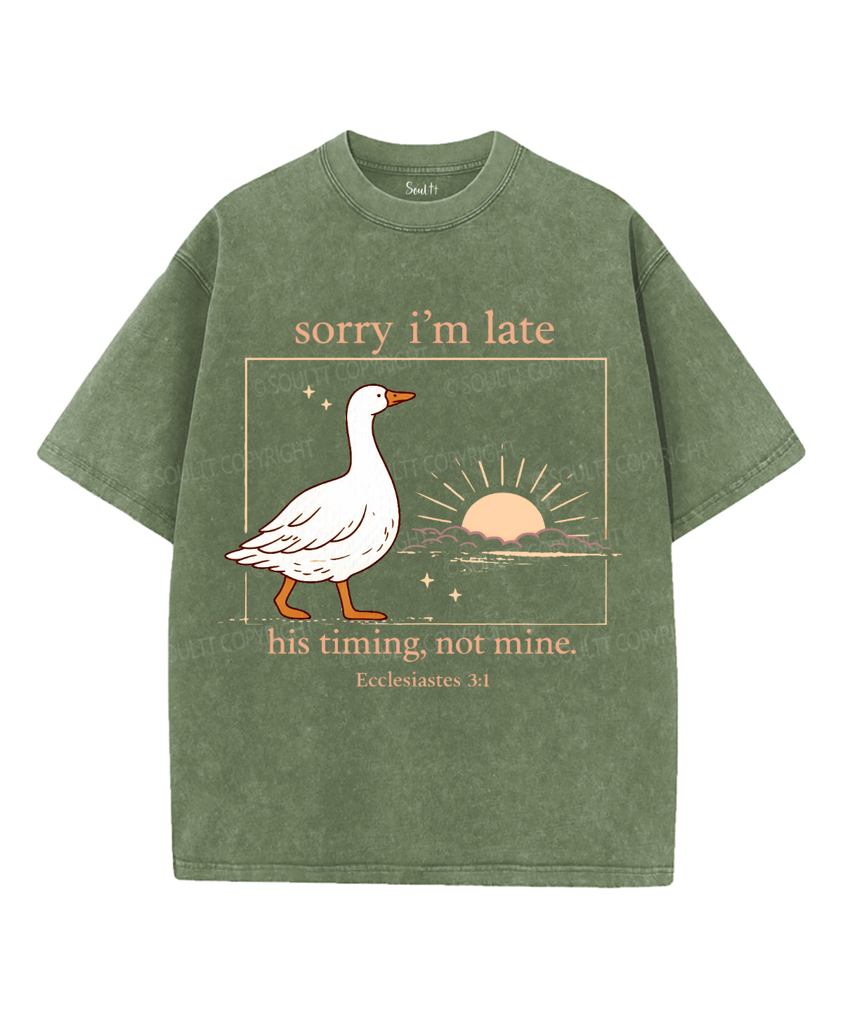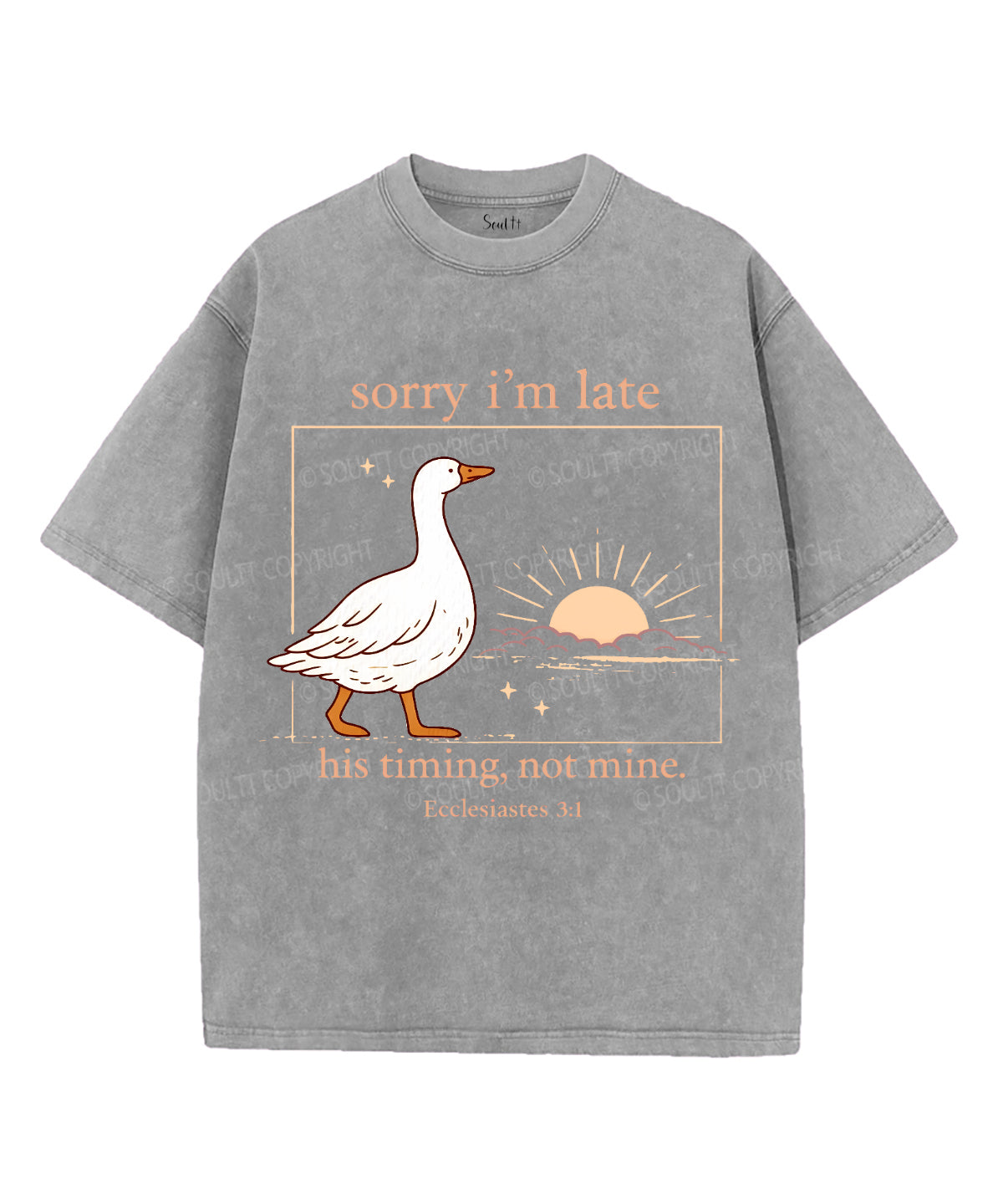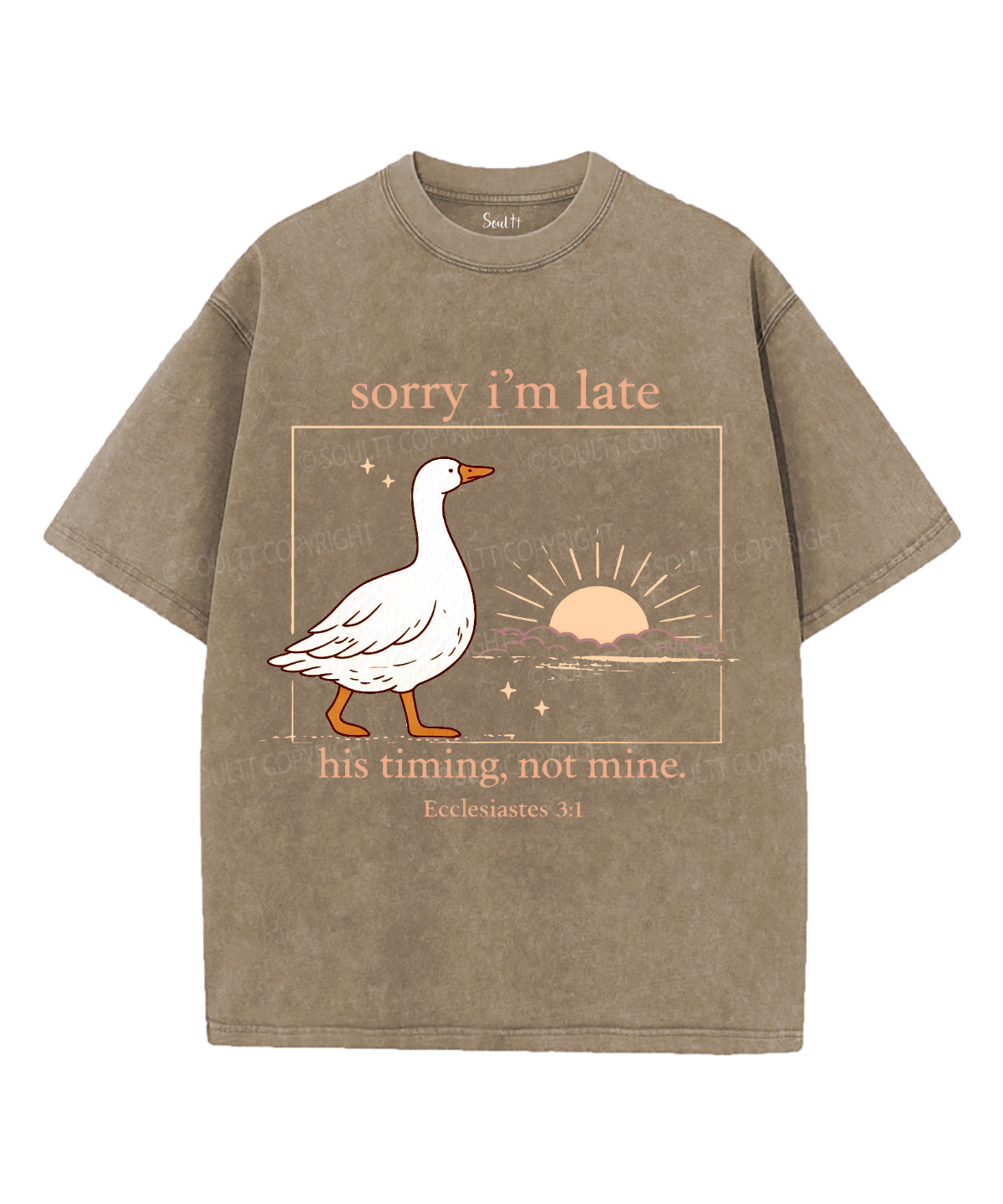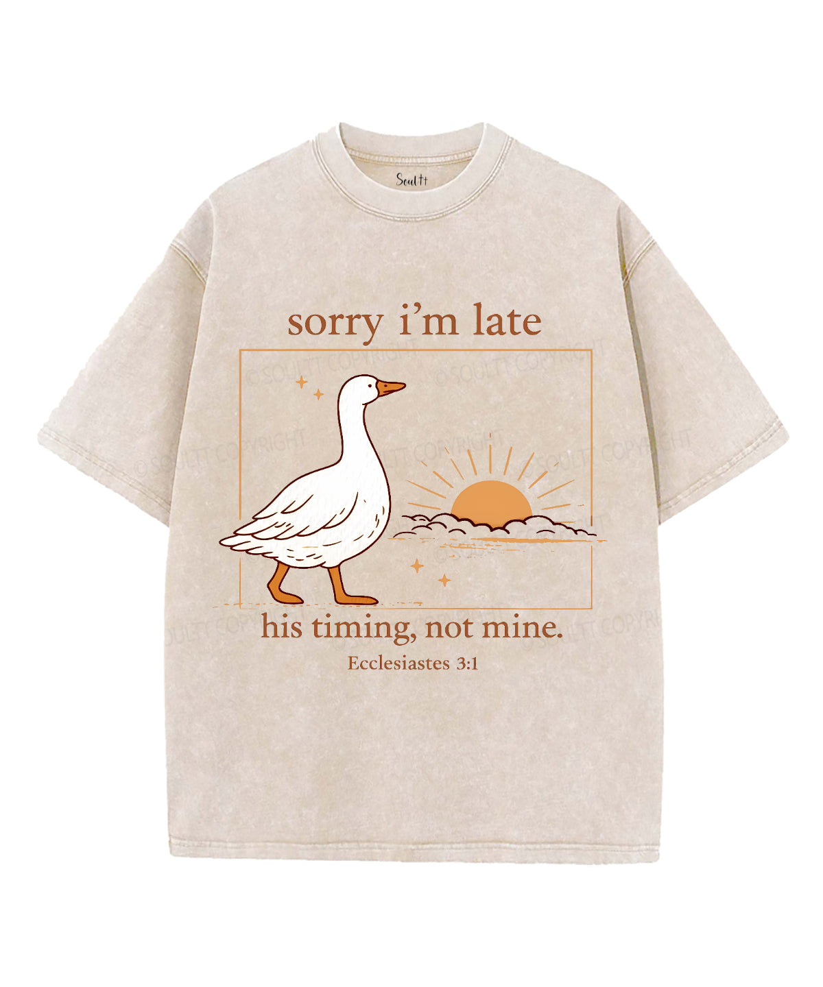 Sorry I'm Late His Timing Not Mine Unisex Washed Christian T-shirt
