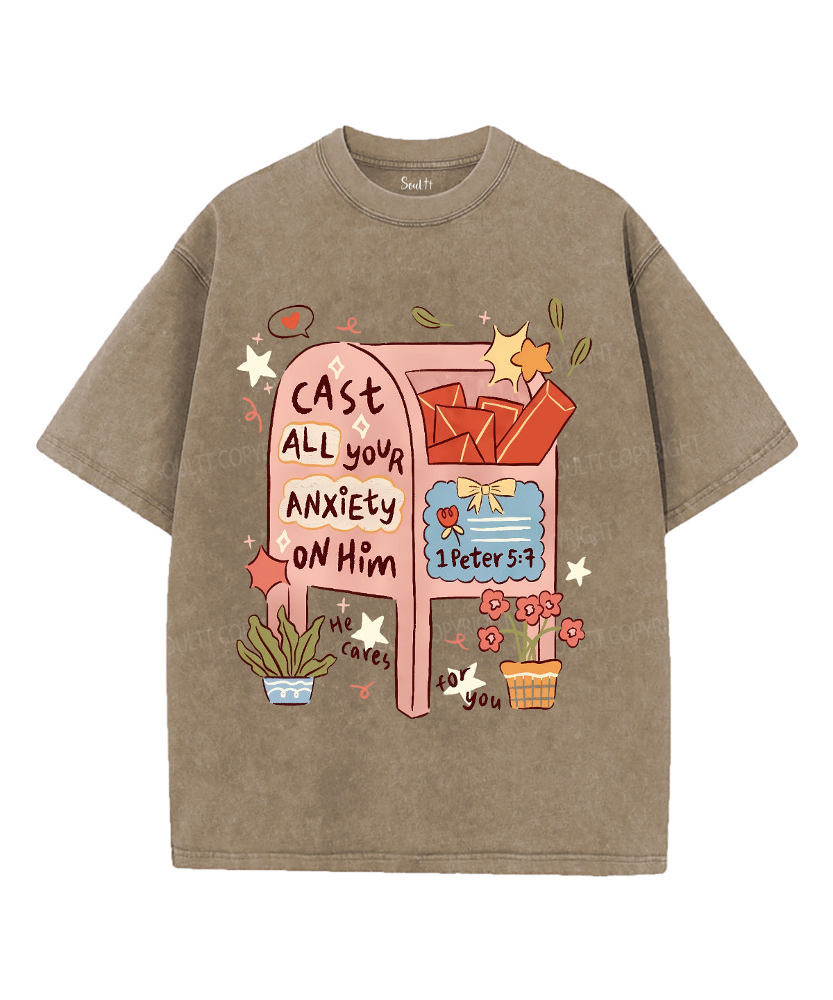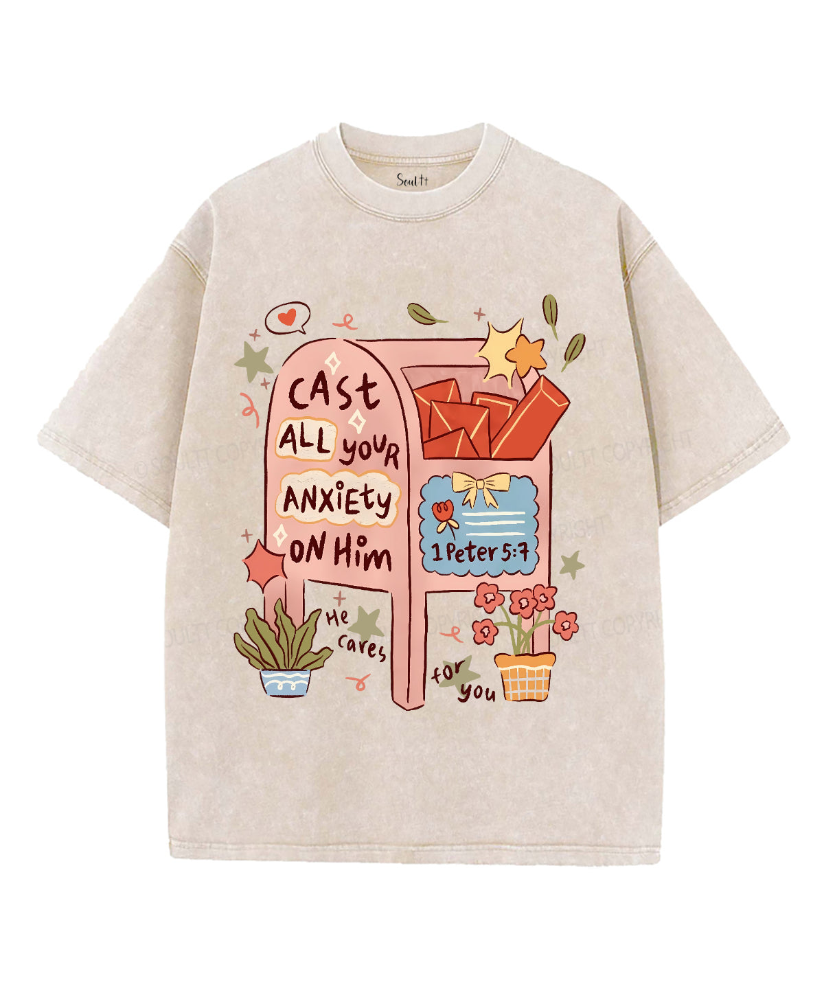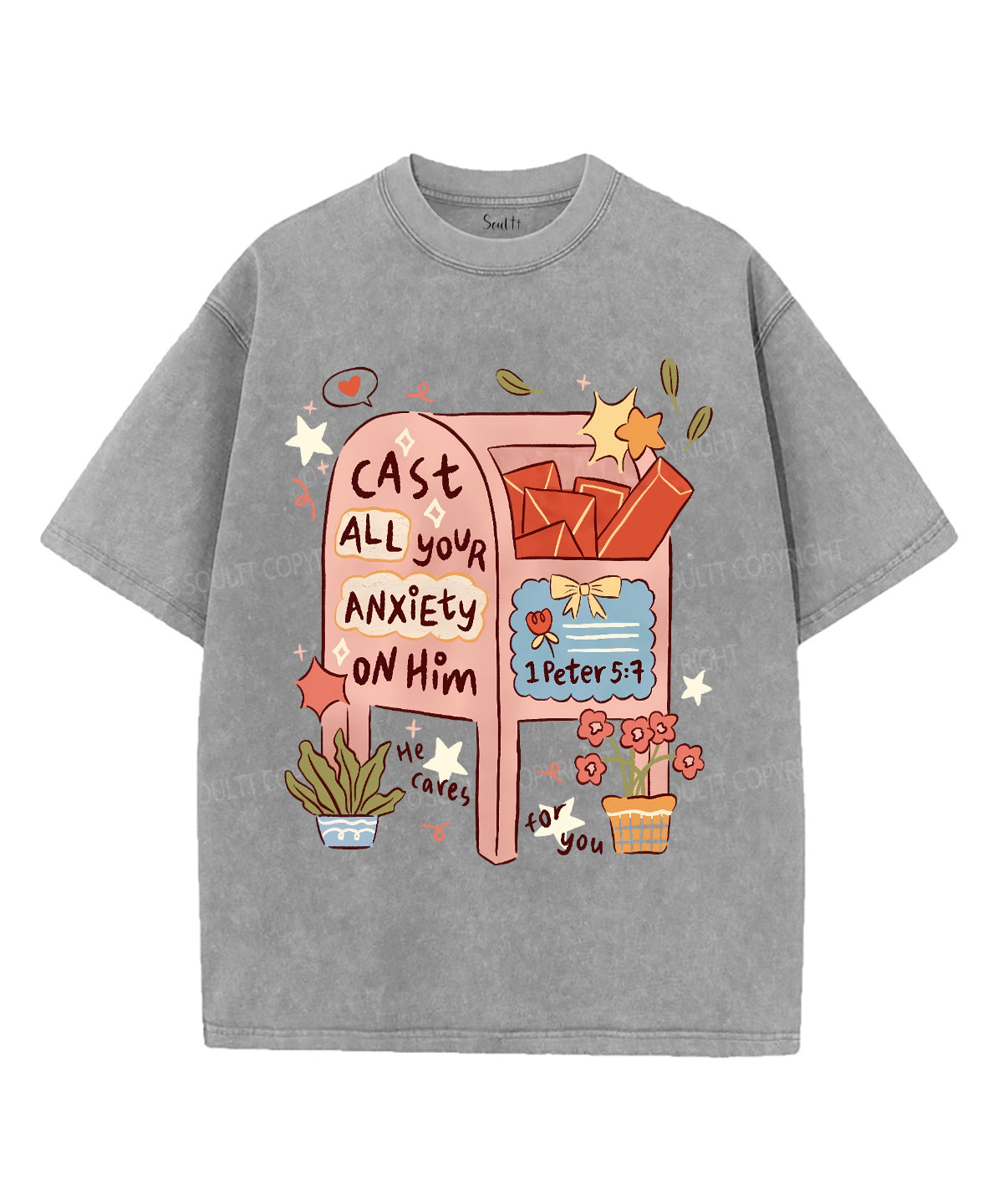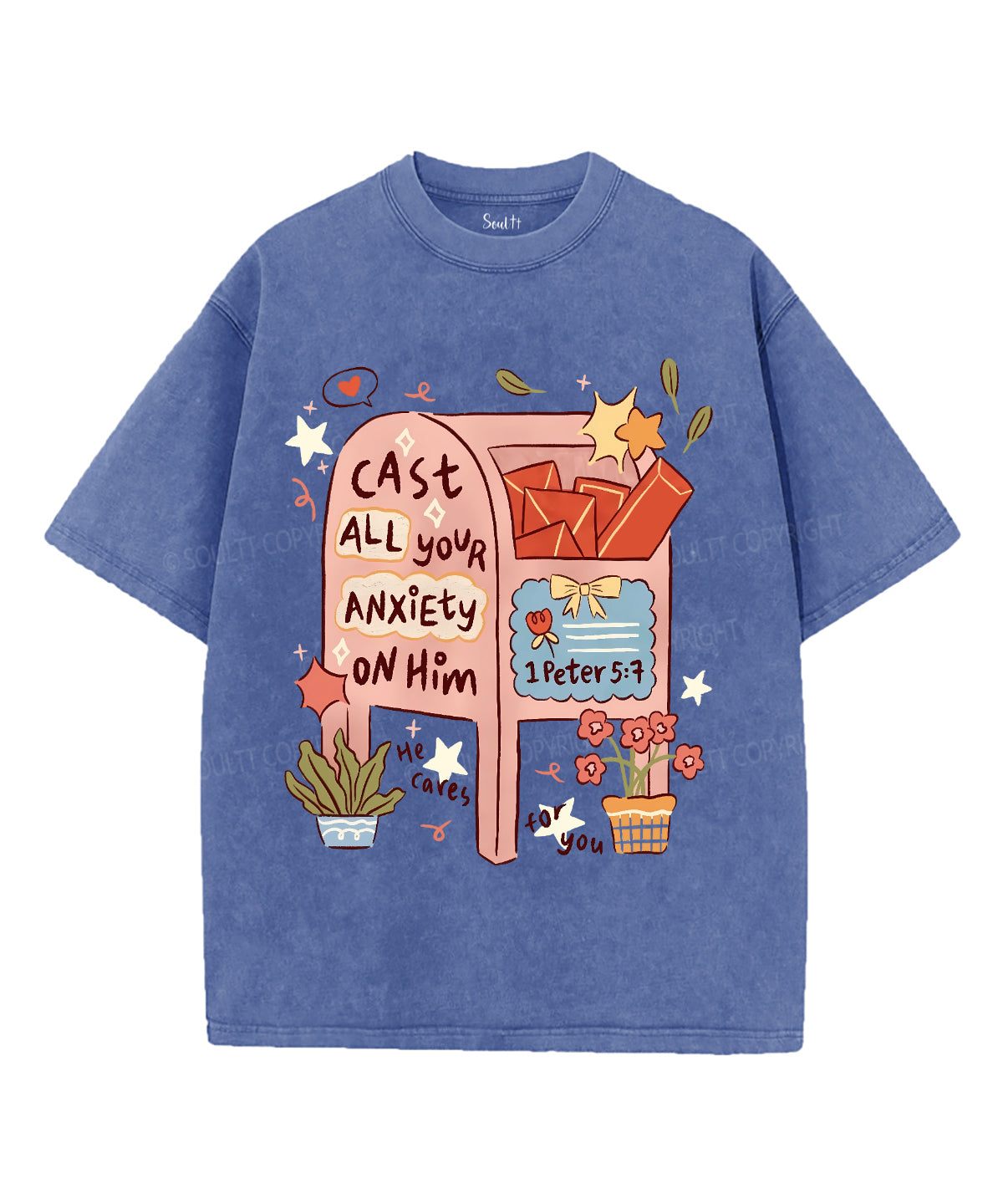 Cast All Your Anxiety On Him Unisex Washed Christian T-shirt