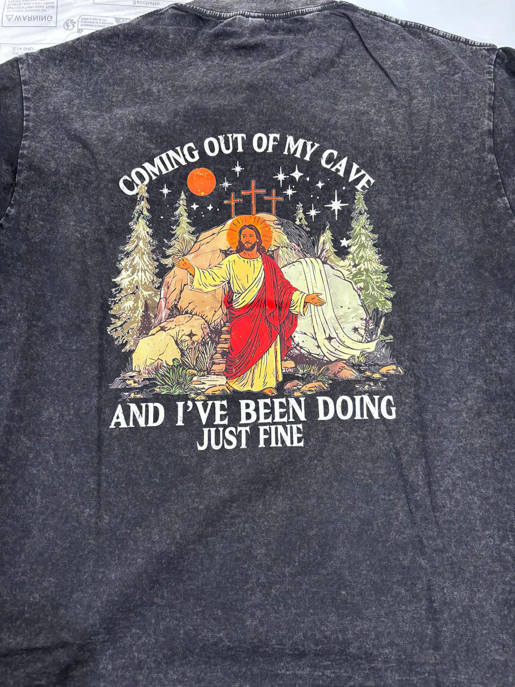 Coming Out Of My Cave And I've Been Doing Just Fine Double Sided Unisex Washed Christian T-shirt