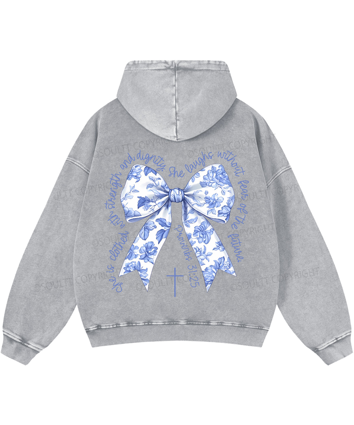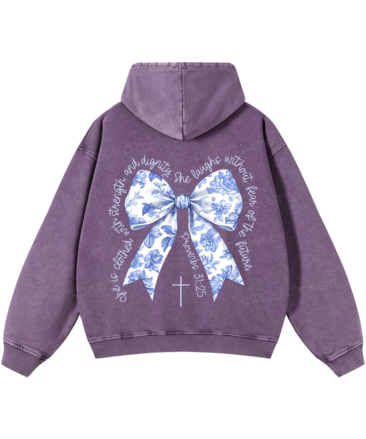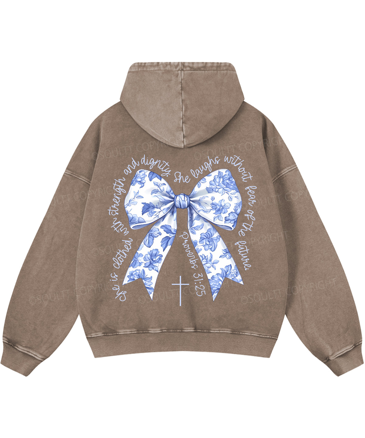 She is clothed with strength and dignity Double Sided Washed Christian Hoodie