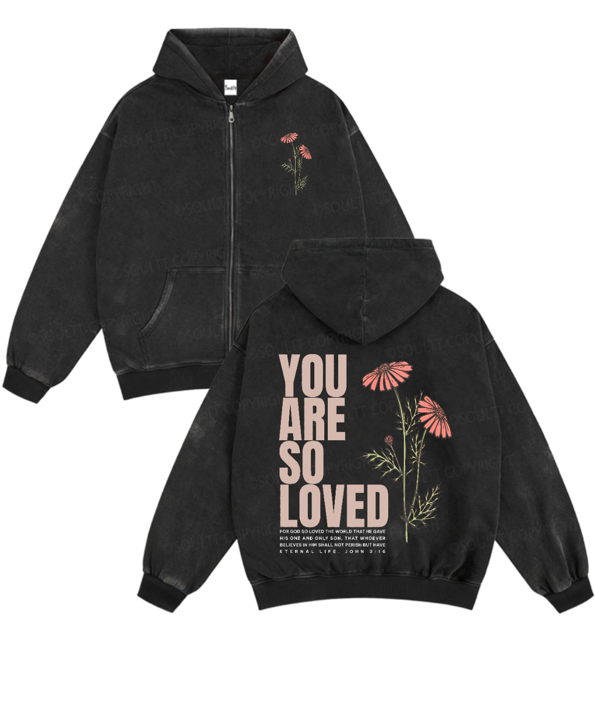 You Are So Loved Double Sided Washed Christian Zip-Up Hoodie