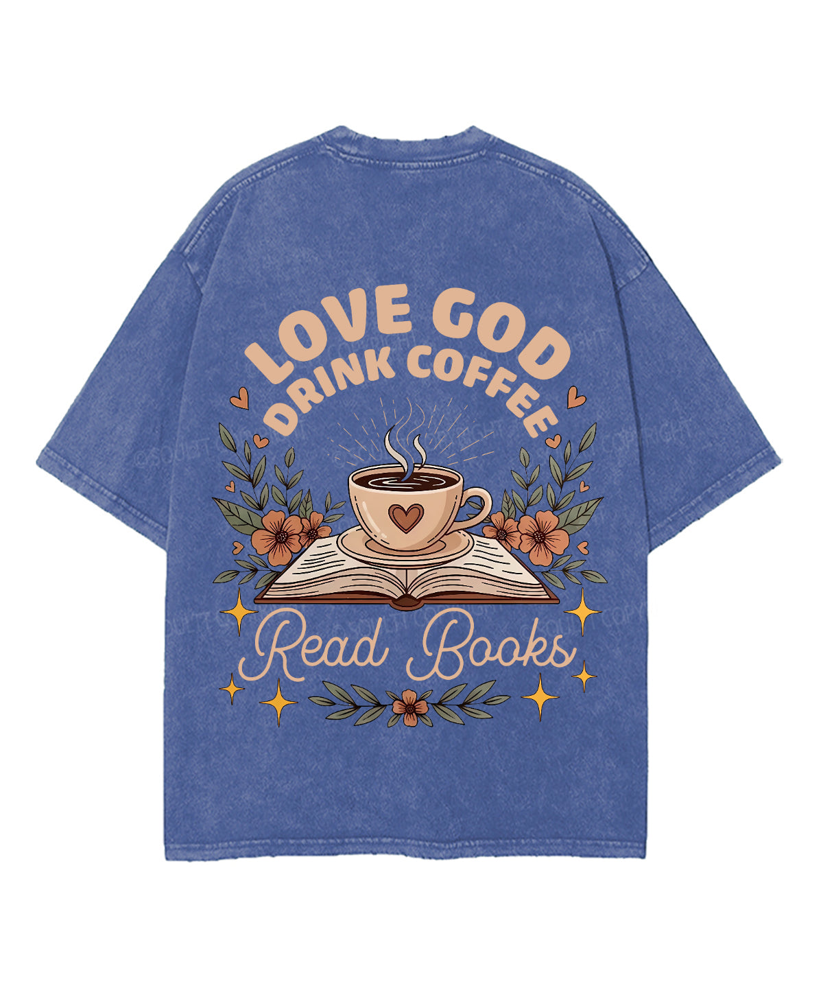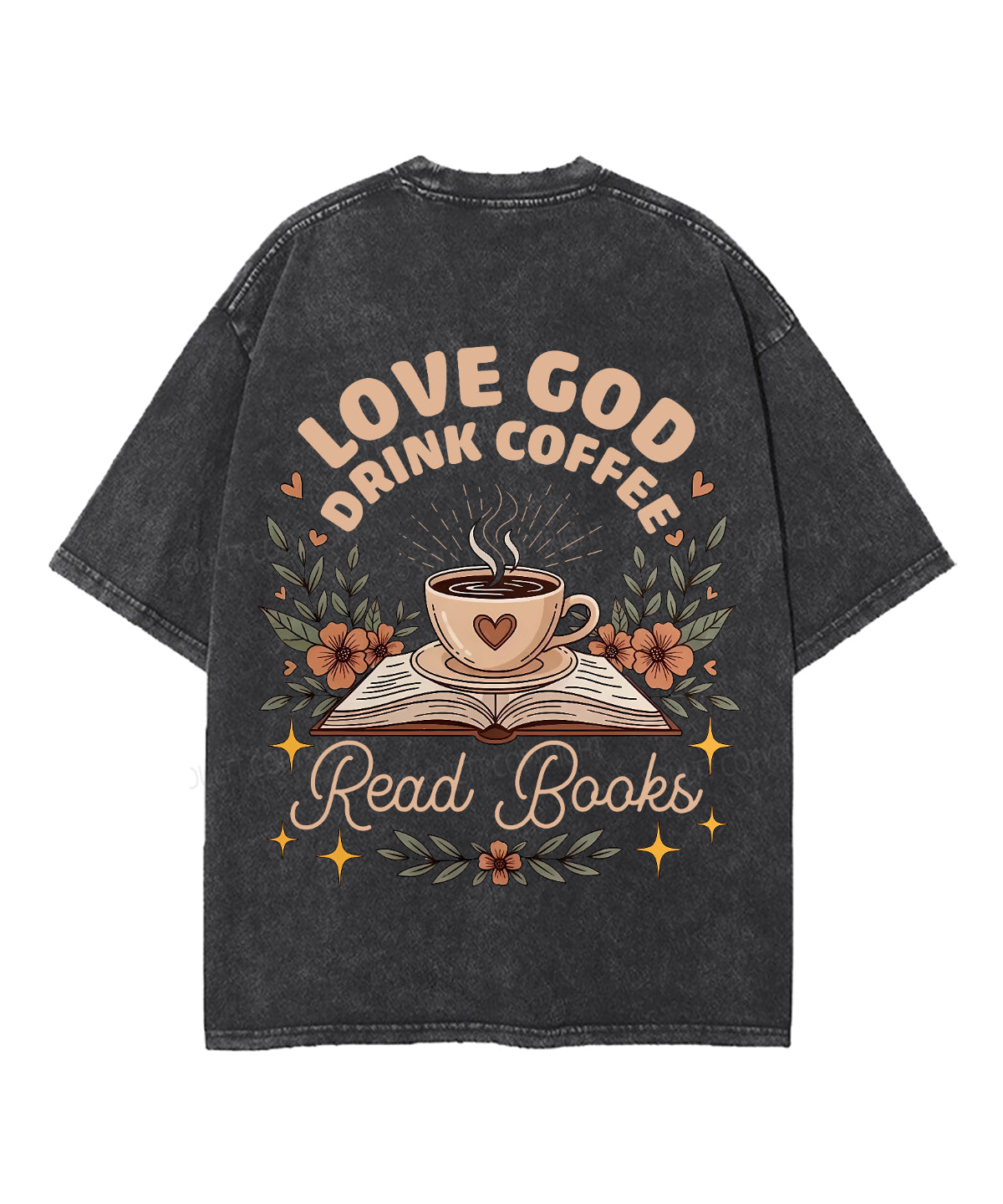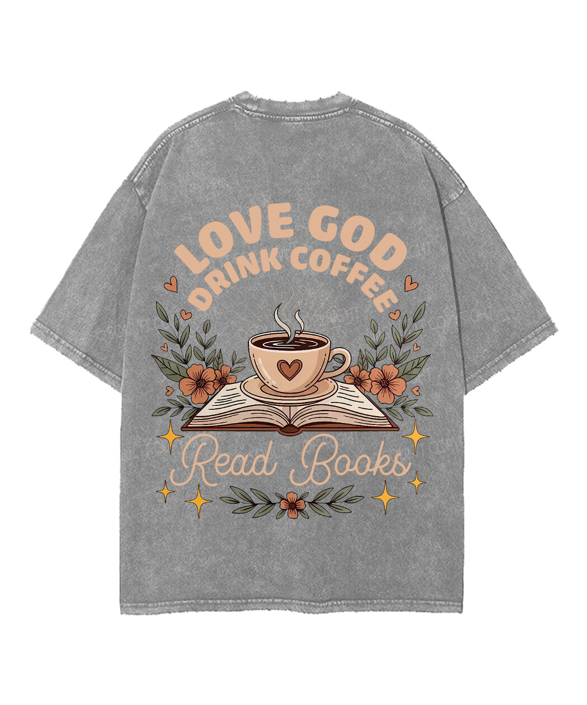 Love God Drink Coffee Double Sided Unisex Washed Christian T-shirt