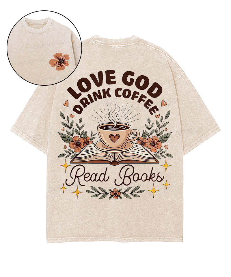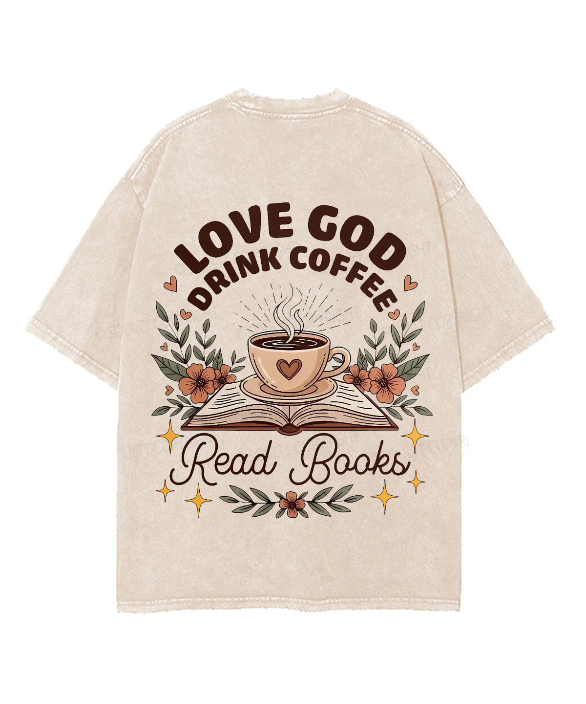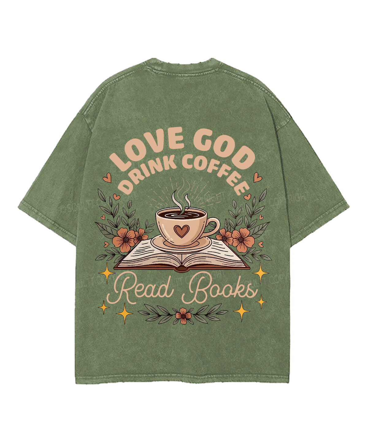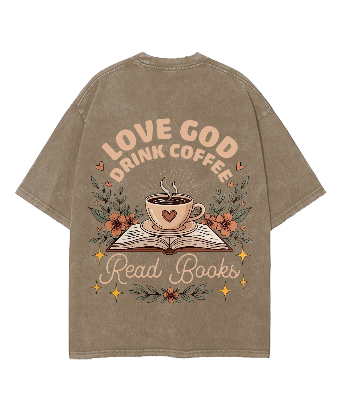 Love God Drink Coffee Double Sided Unisex Washed Christian T-shirt