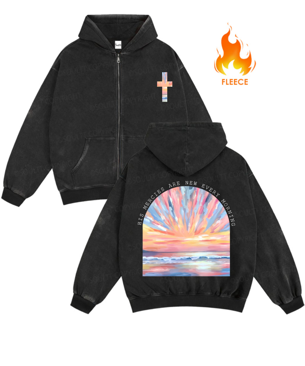 His Mercies Are New Every Morning Double Sided Washed Zip-Up Fleece Hoodie