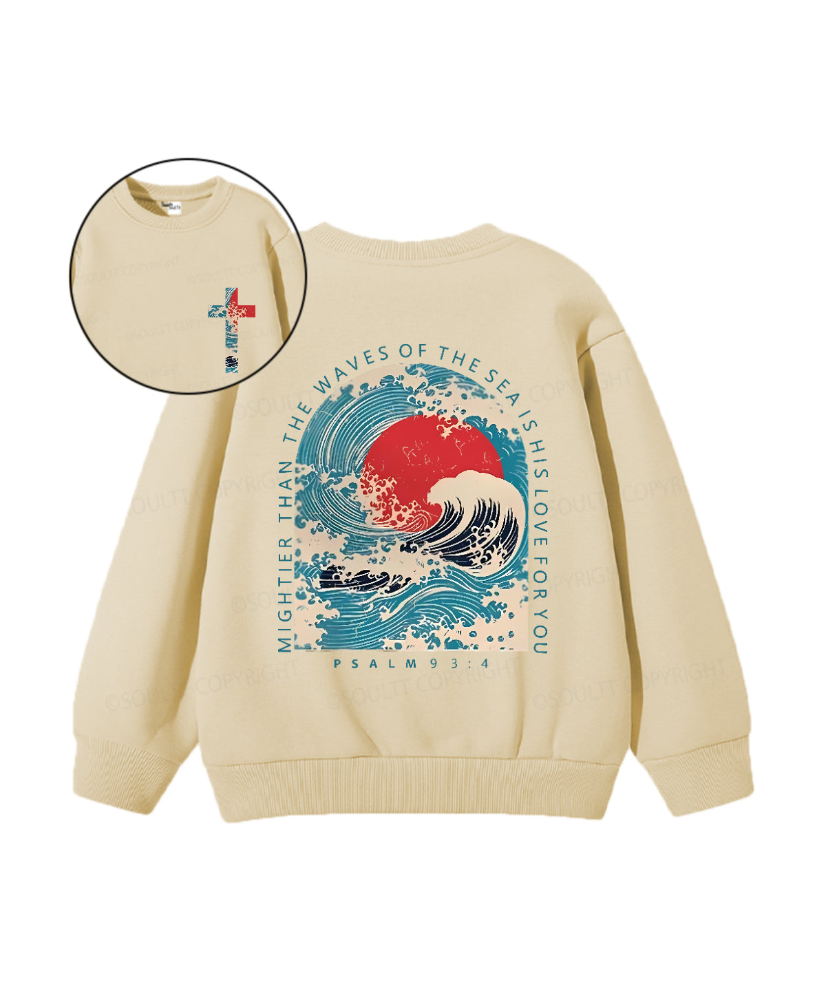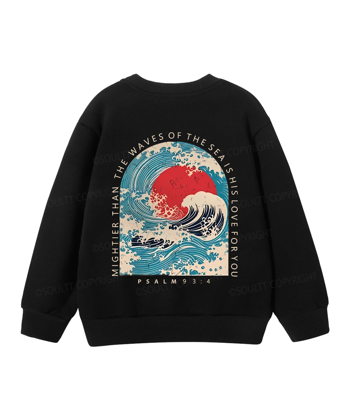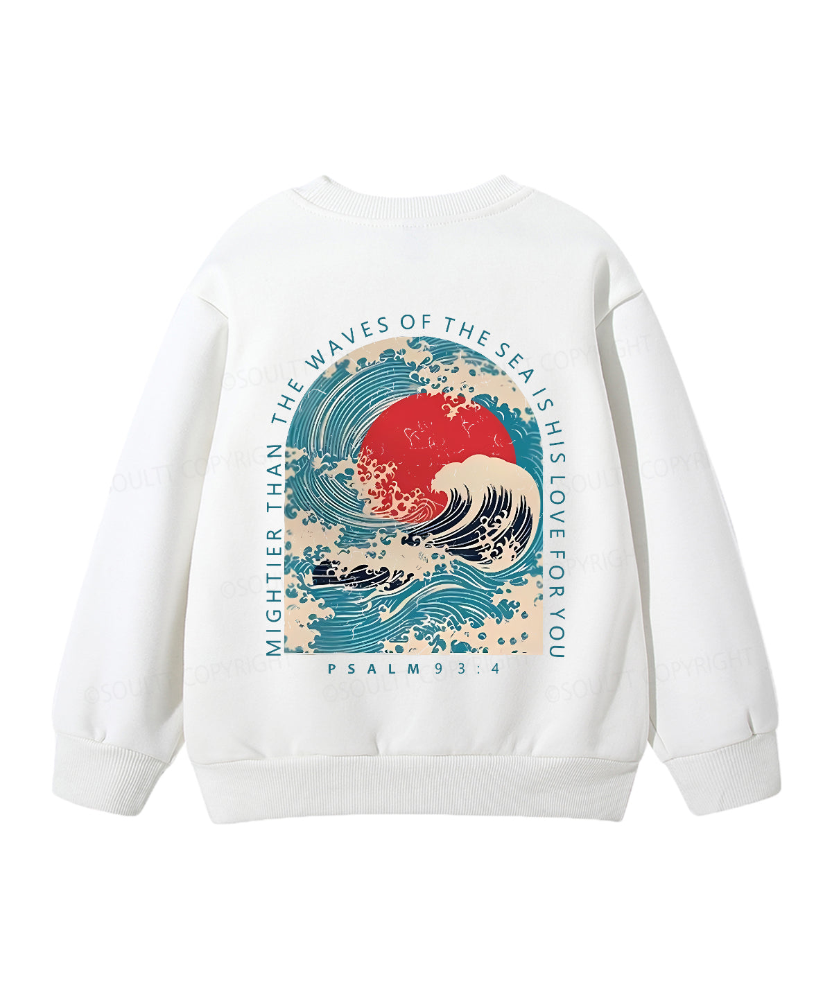 Kids Mightier Than The Waves Of The Sea Is His Love For You Double Sided Christian Sweatshirt
