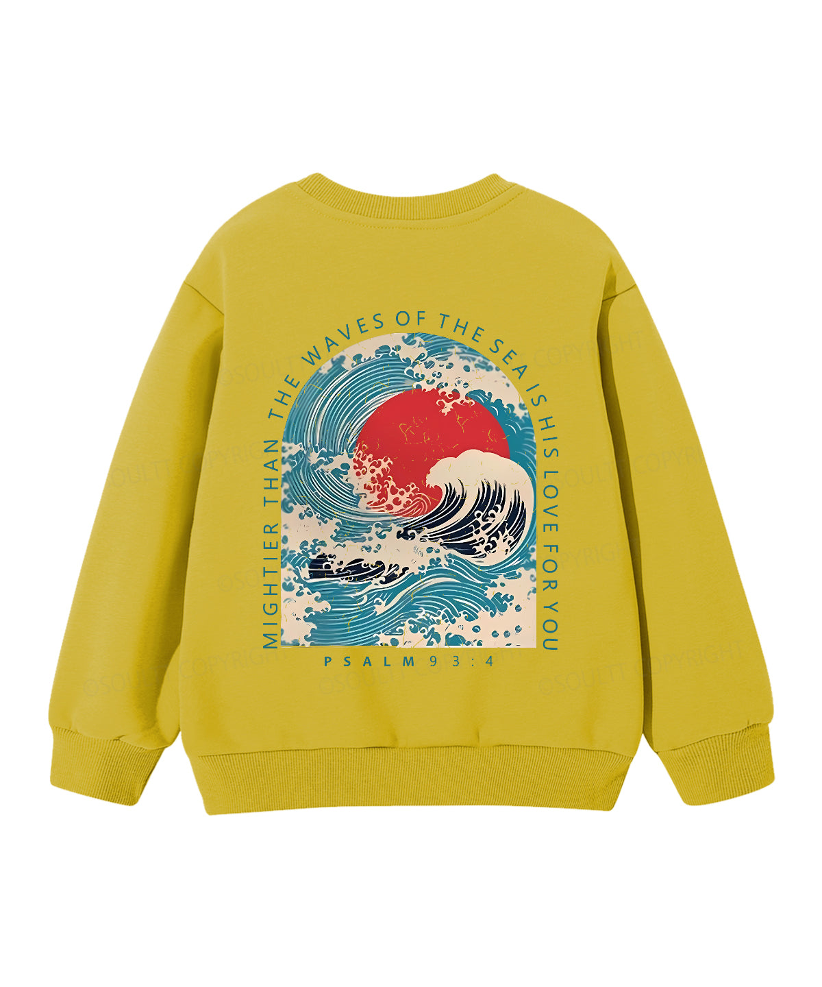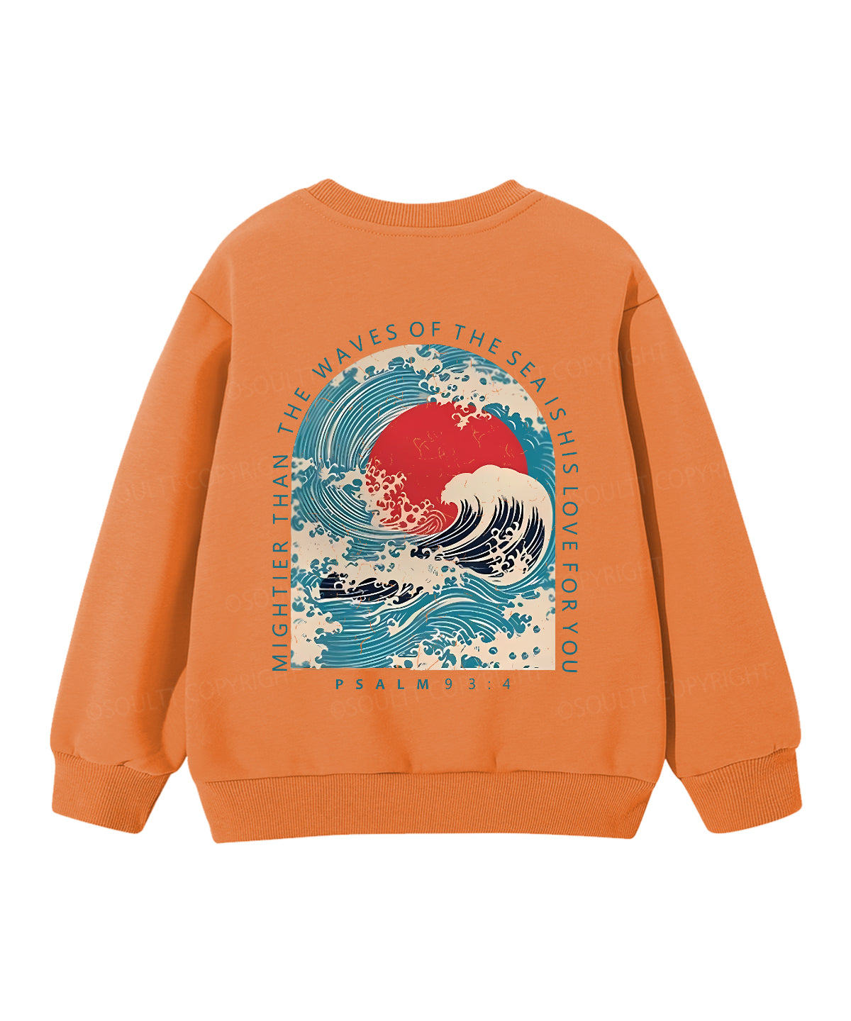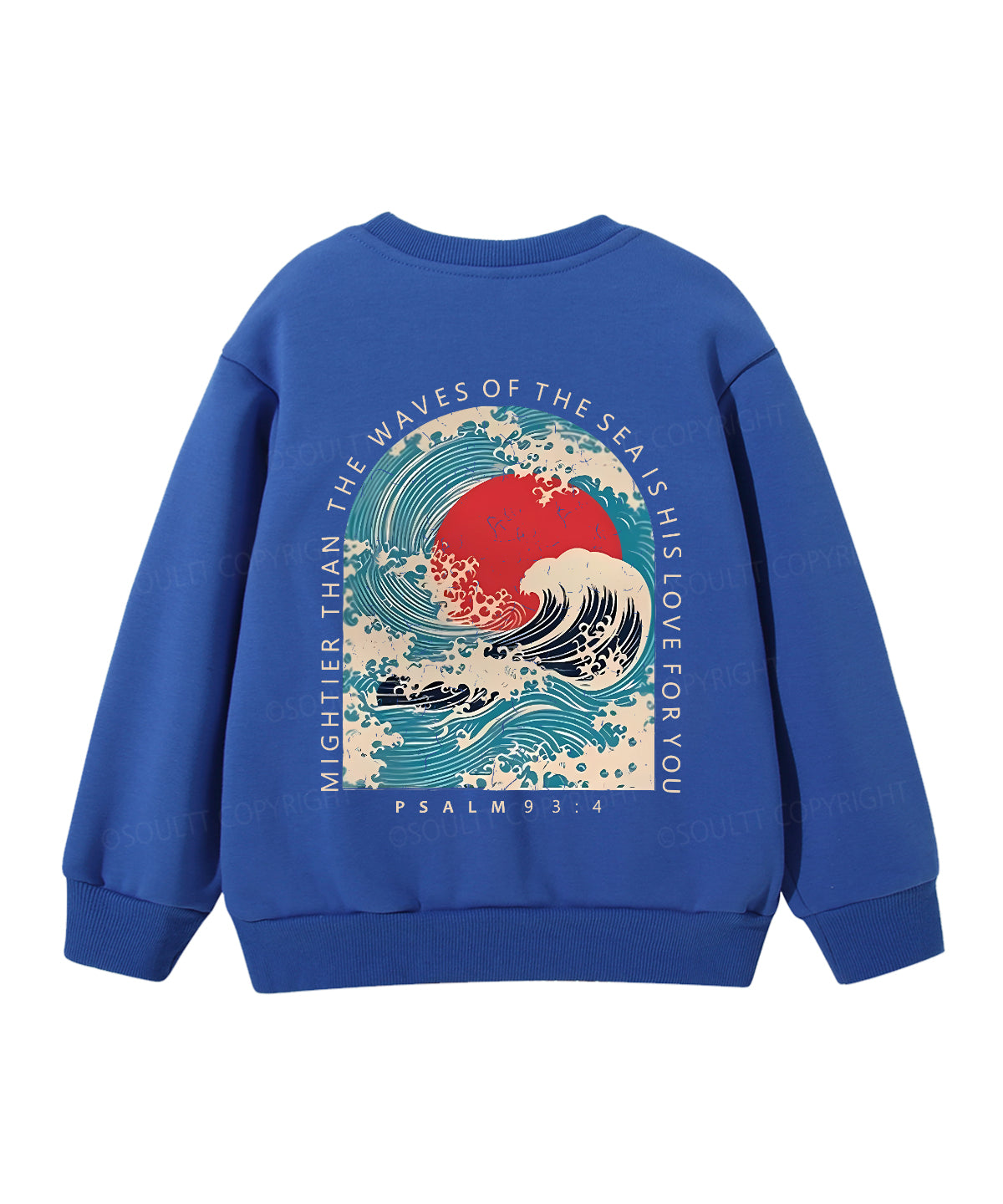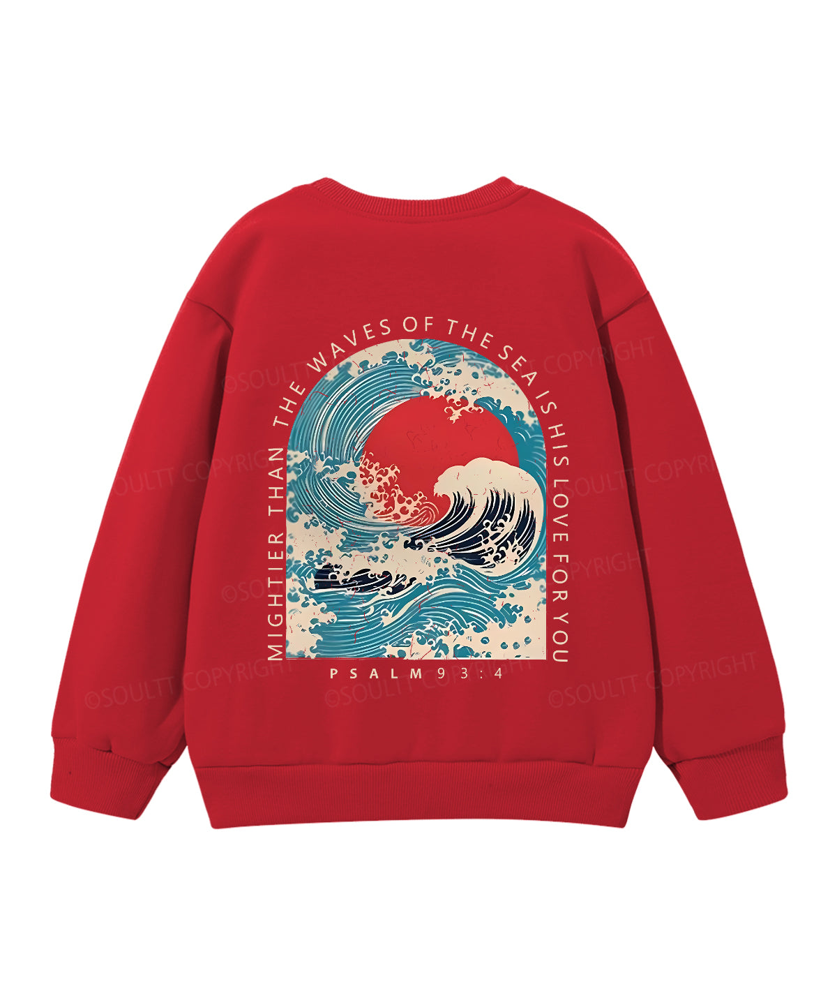 Kids Mightier Than The Waves Of The Sea Is His Love For You Double Sided Christian Sweatshirt