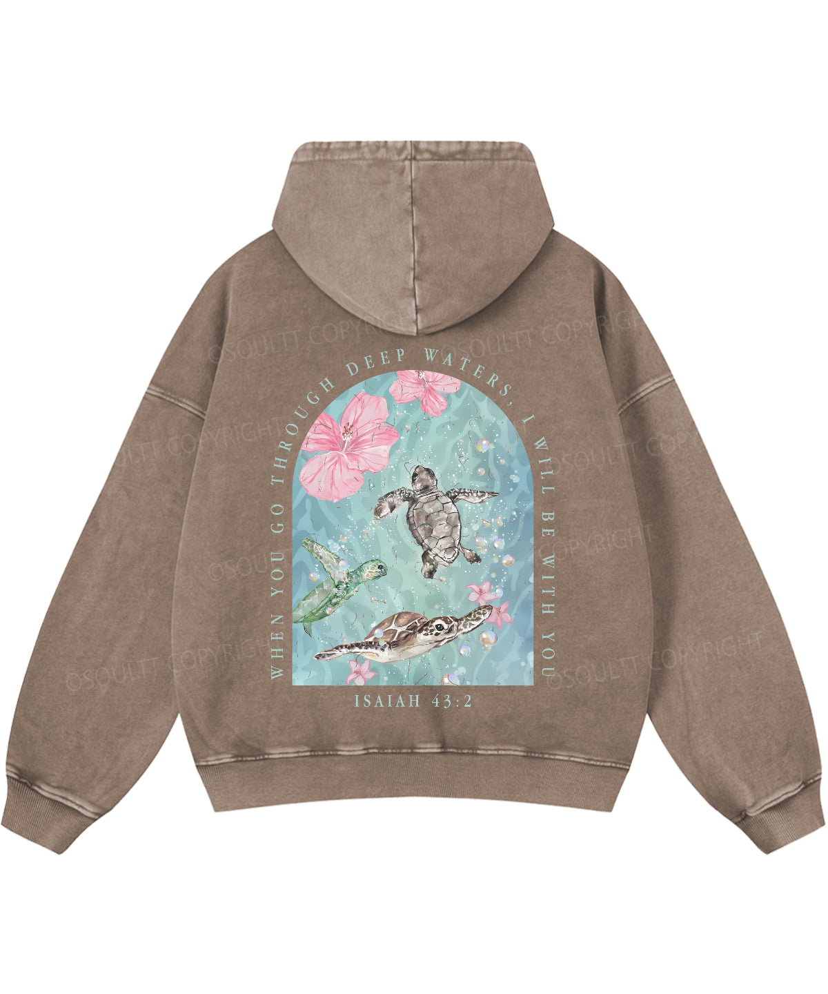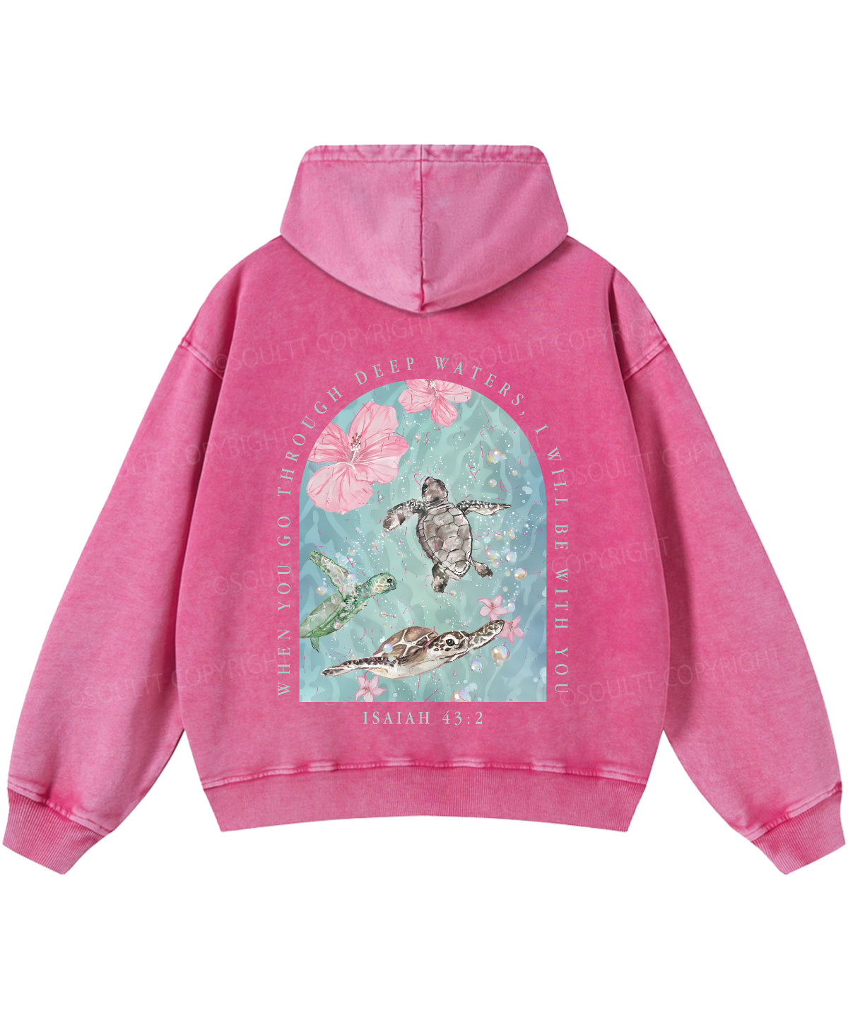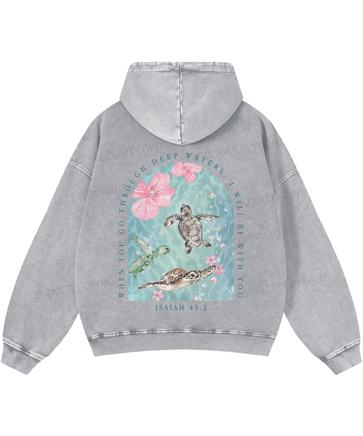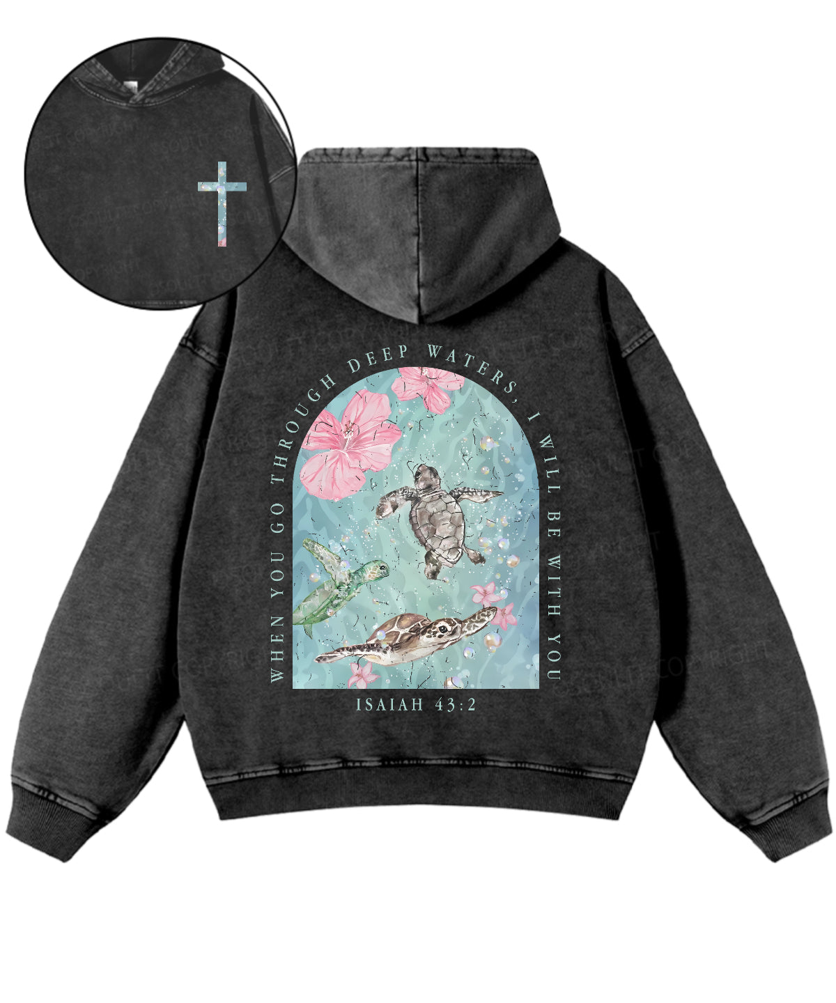 When You Go Through Deep Waters Double Sided Washed Christian Hoodie