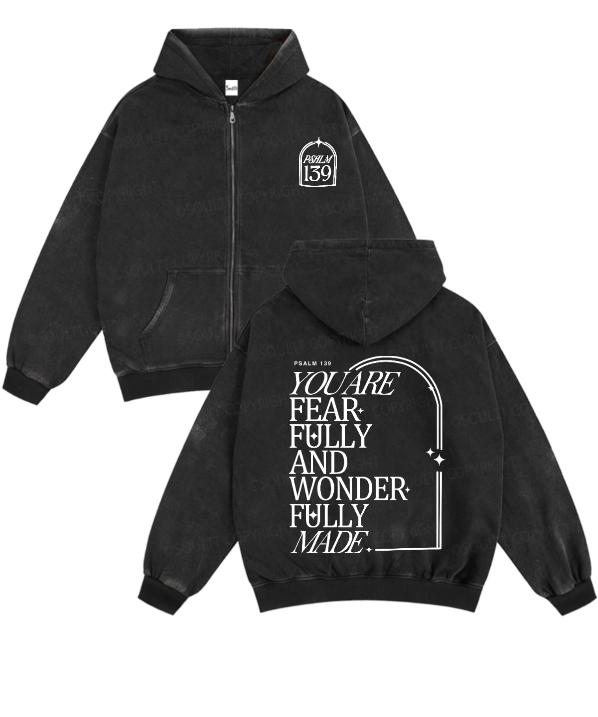 You Are Fearfully And Wonderfully Made Double Sided Washed Christian Zip-Up Hoodie