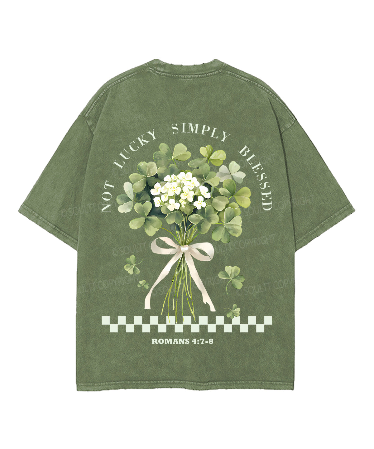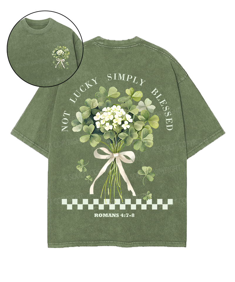 Not Lucky Simply Blessed Double Sided Unisex Washed Christian T-shirt