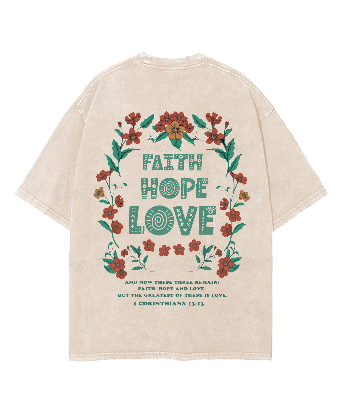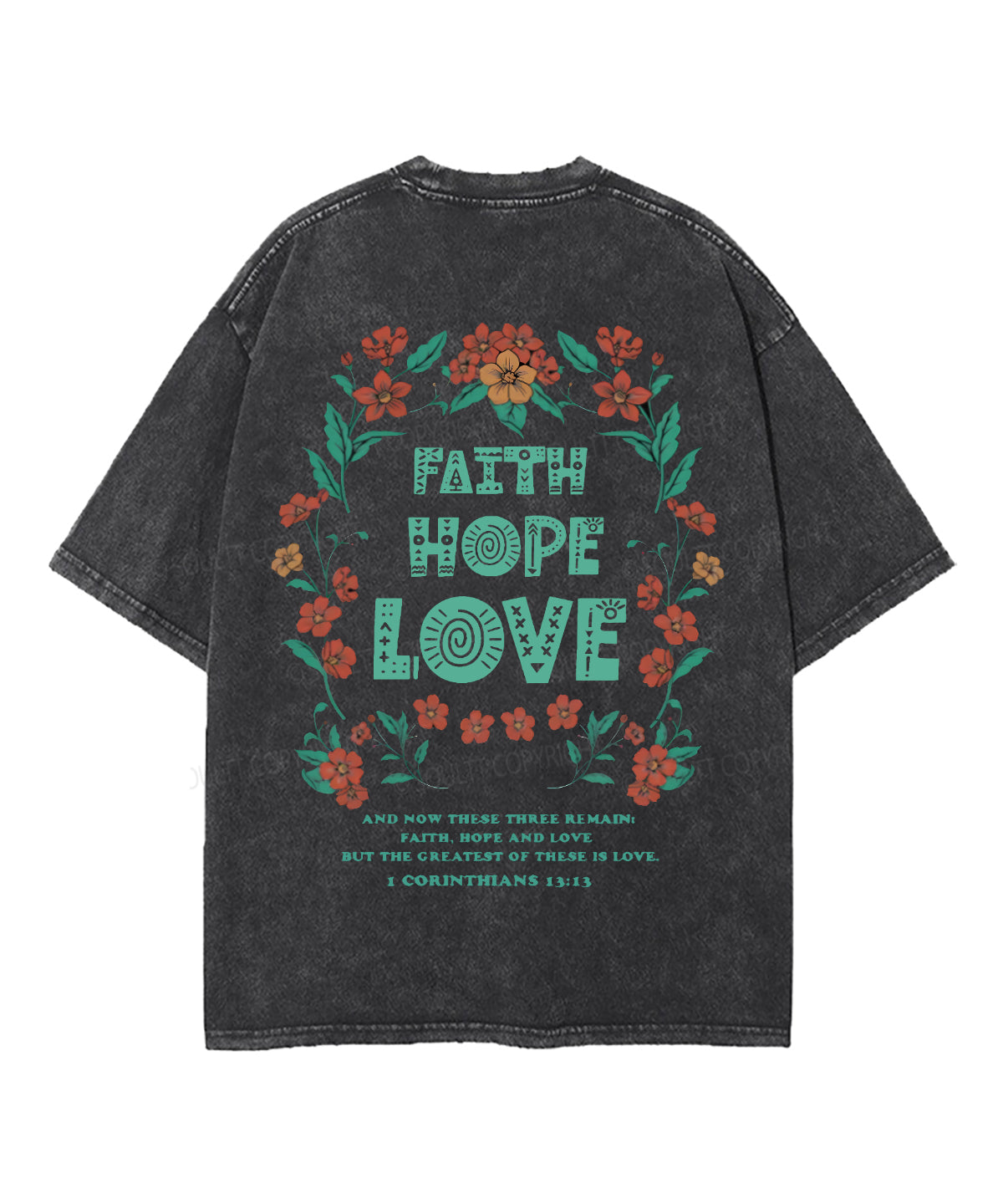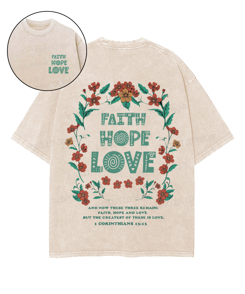Faith Hope Love Double Sided Unisex Washed Christian T-shirt