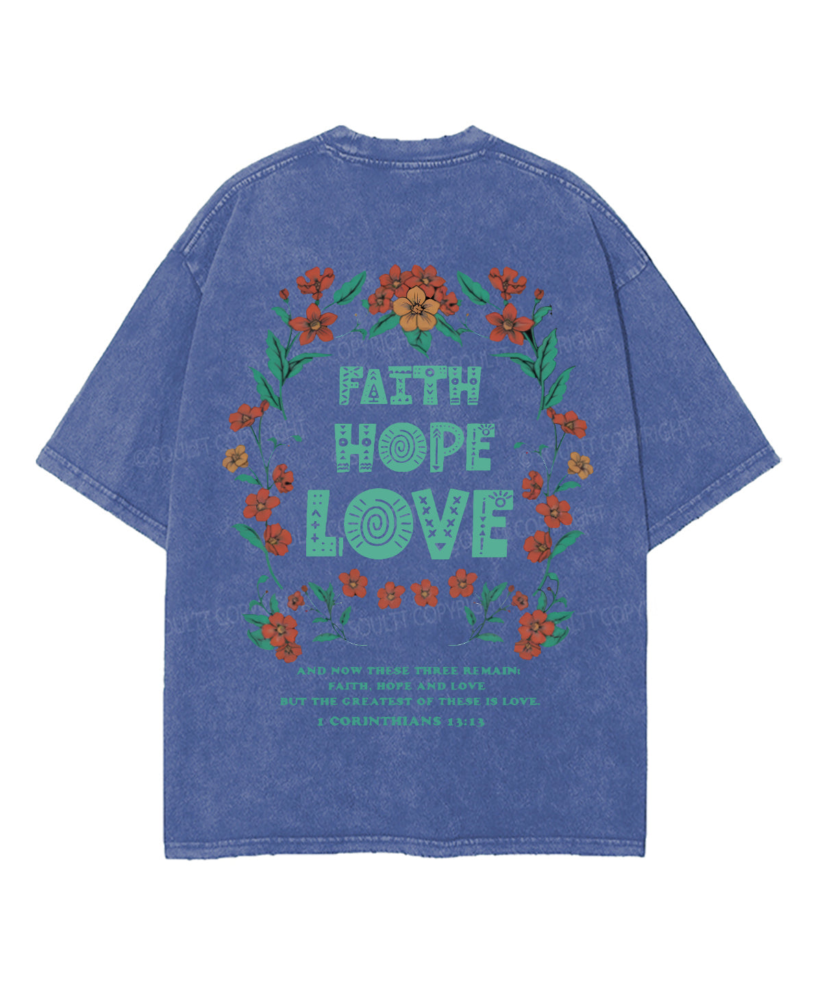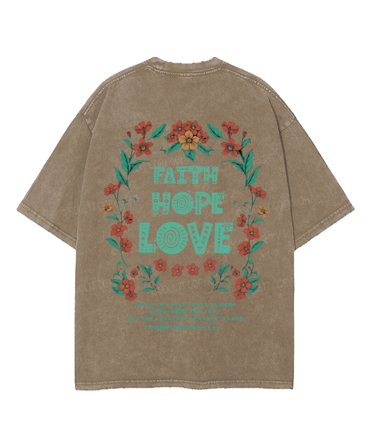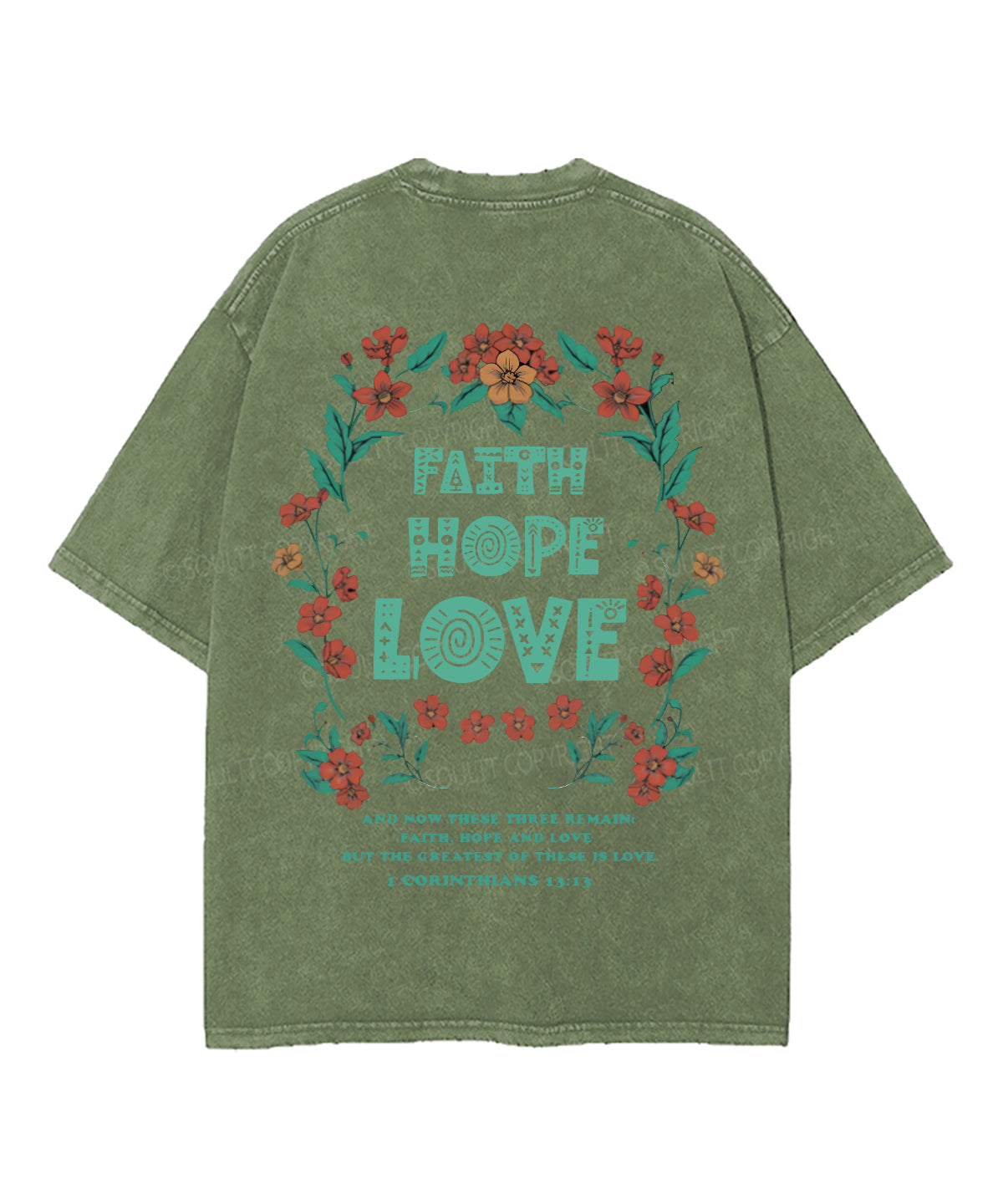 Faith Hope Love Double Sided Unisex Washed Christian T-shirt