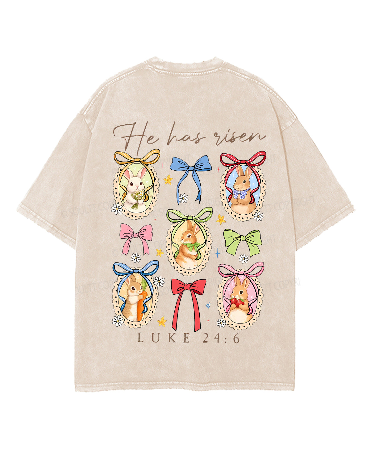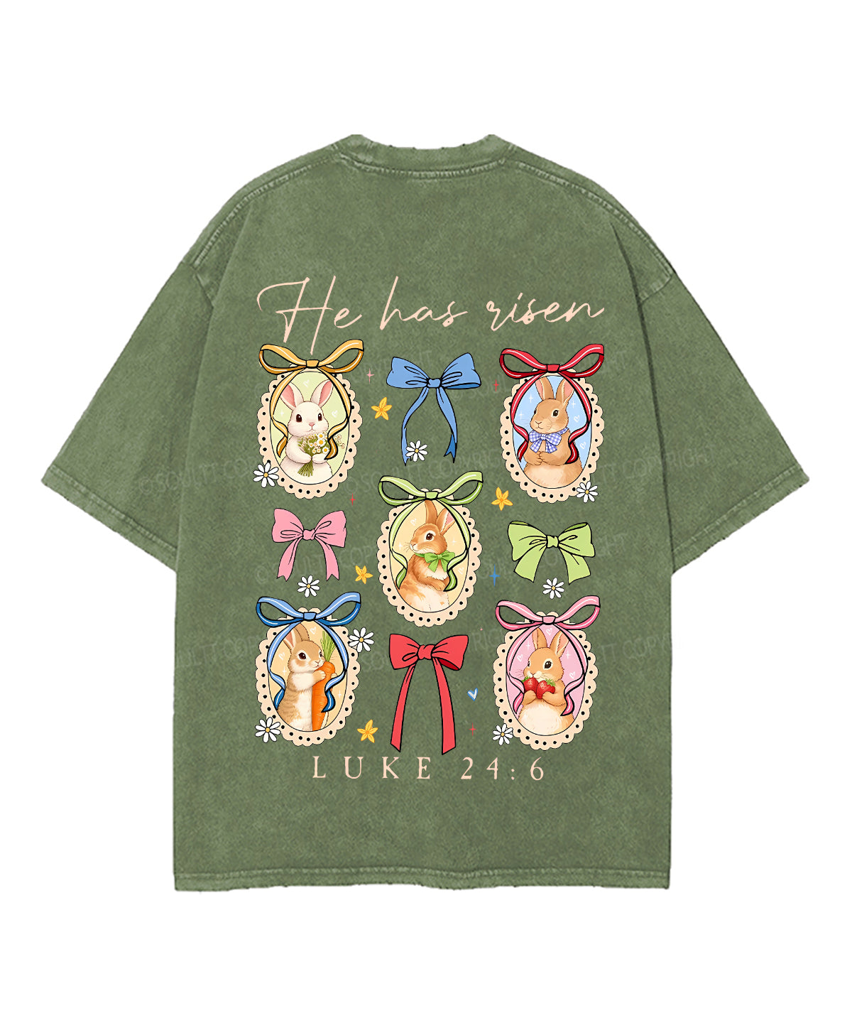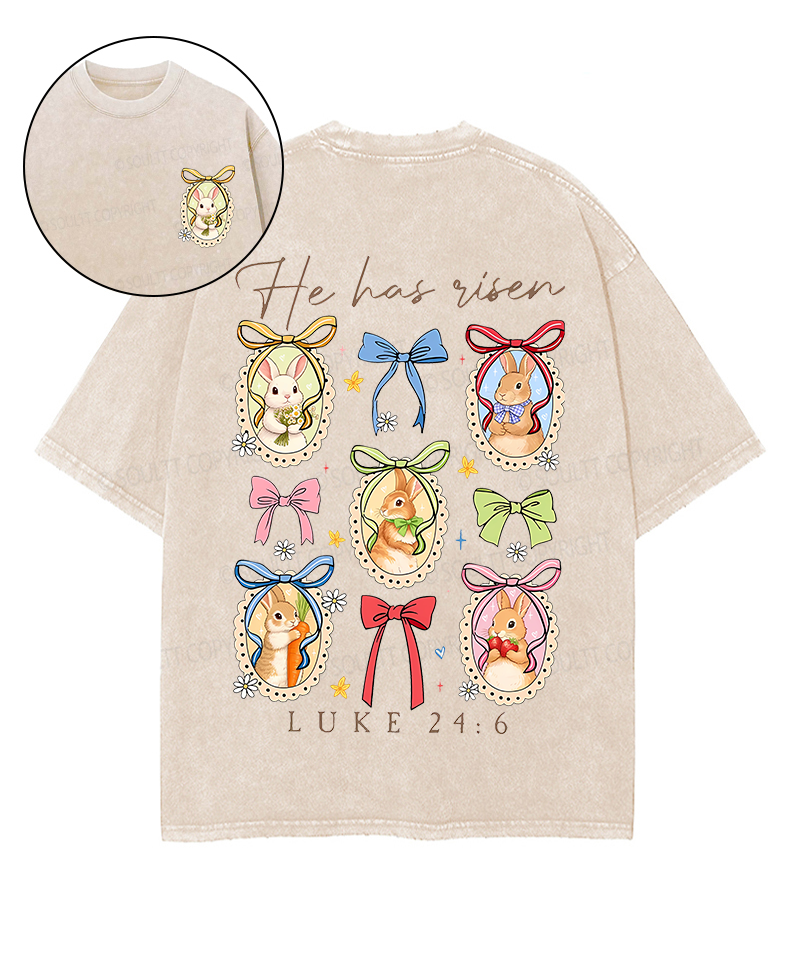 He Has Risen Double Sided Unisex Washed Christian T-shirt