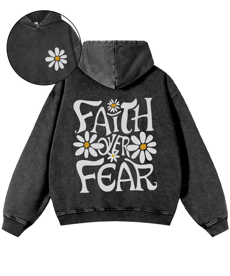 Faith Over Fear Double Sided Washed Christian Hoodie
