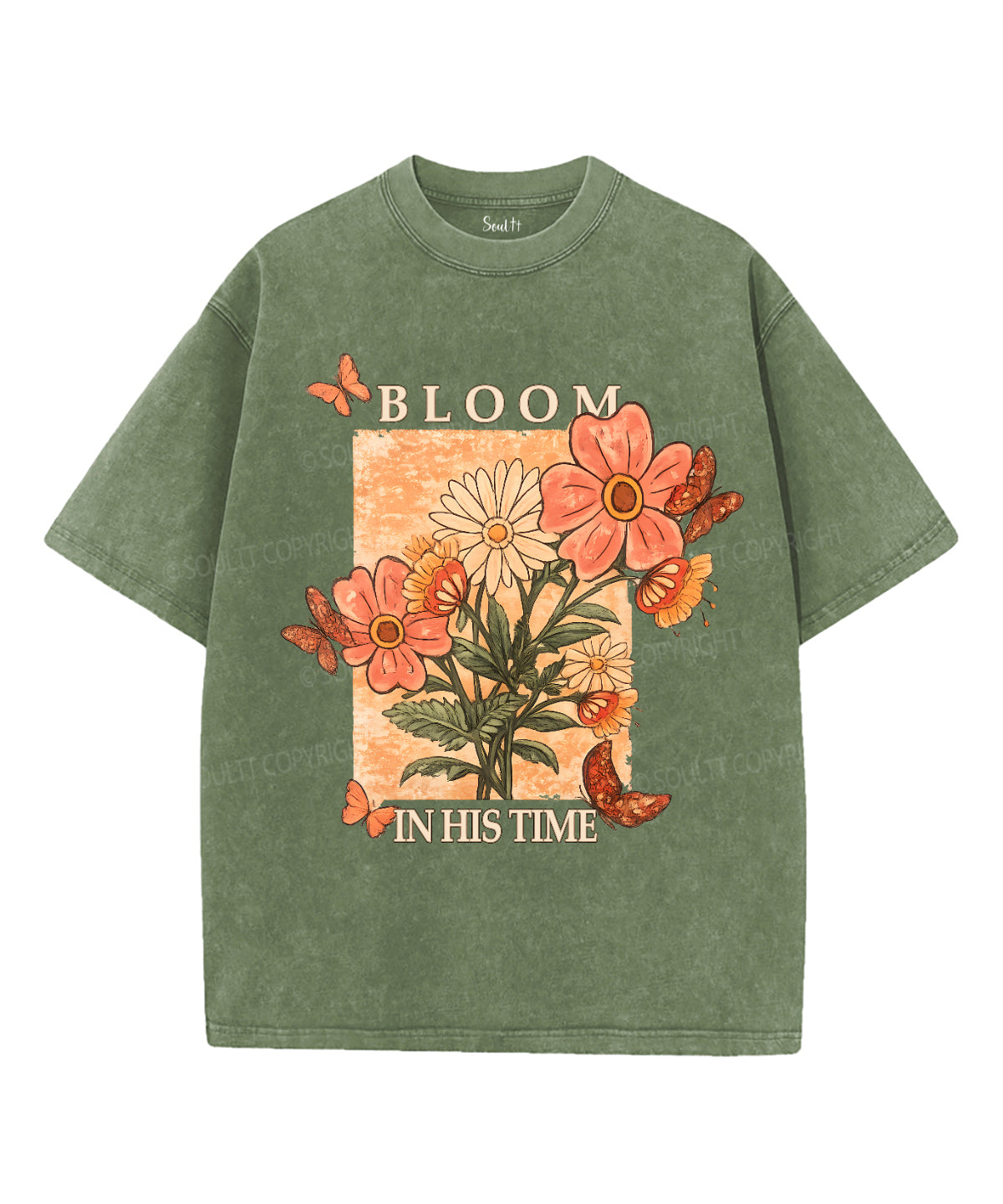Bloom In His Time Unisex Washed Christian T-shirt