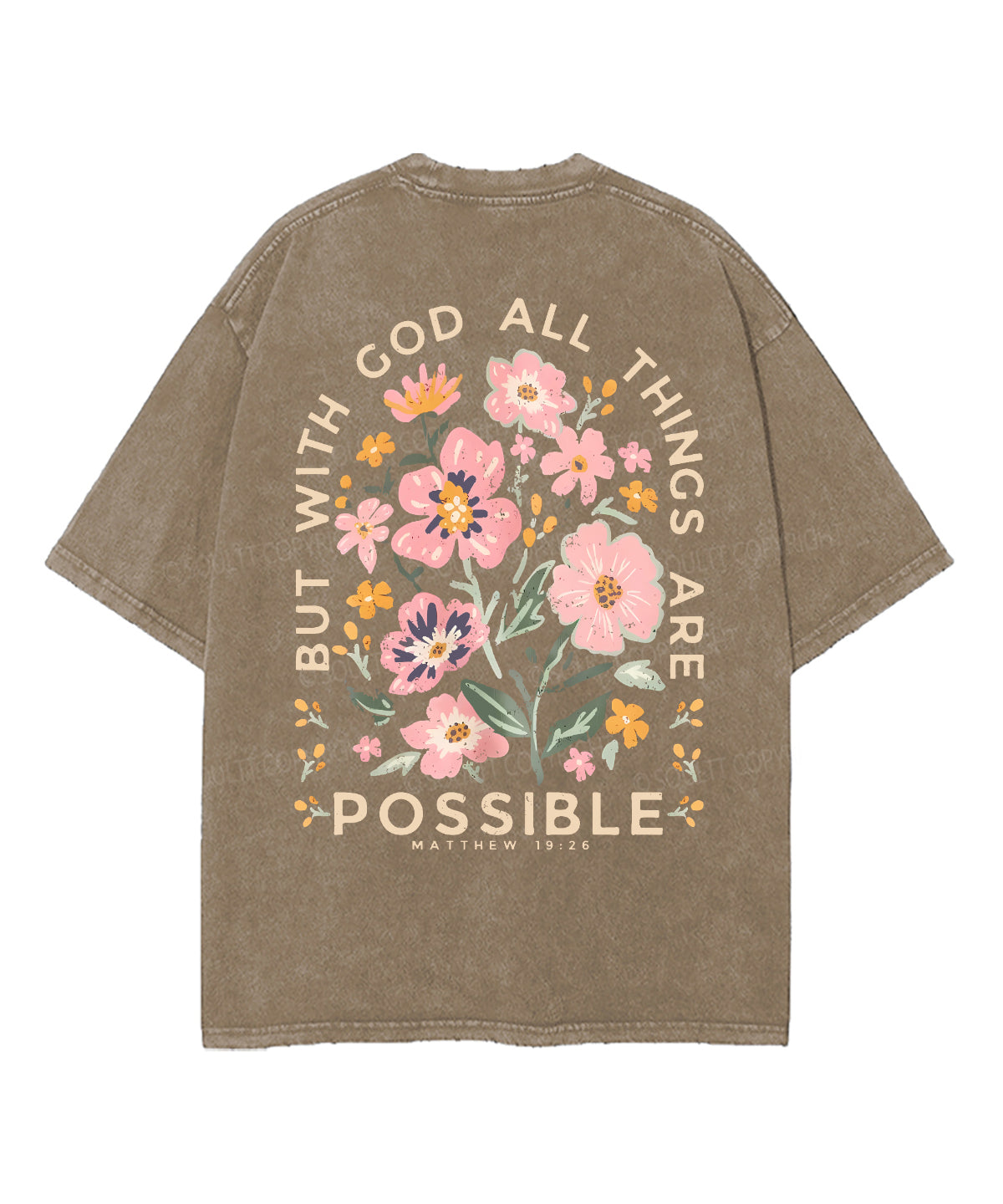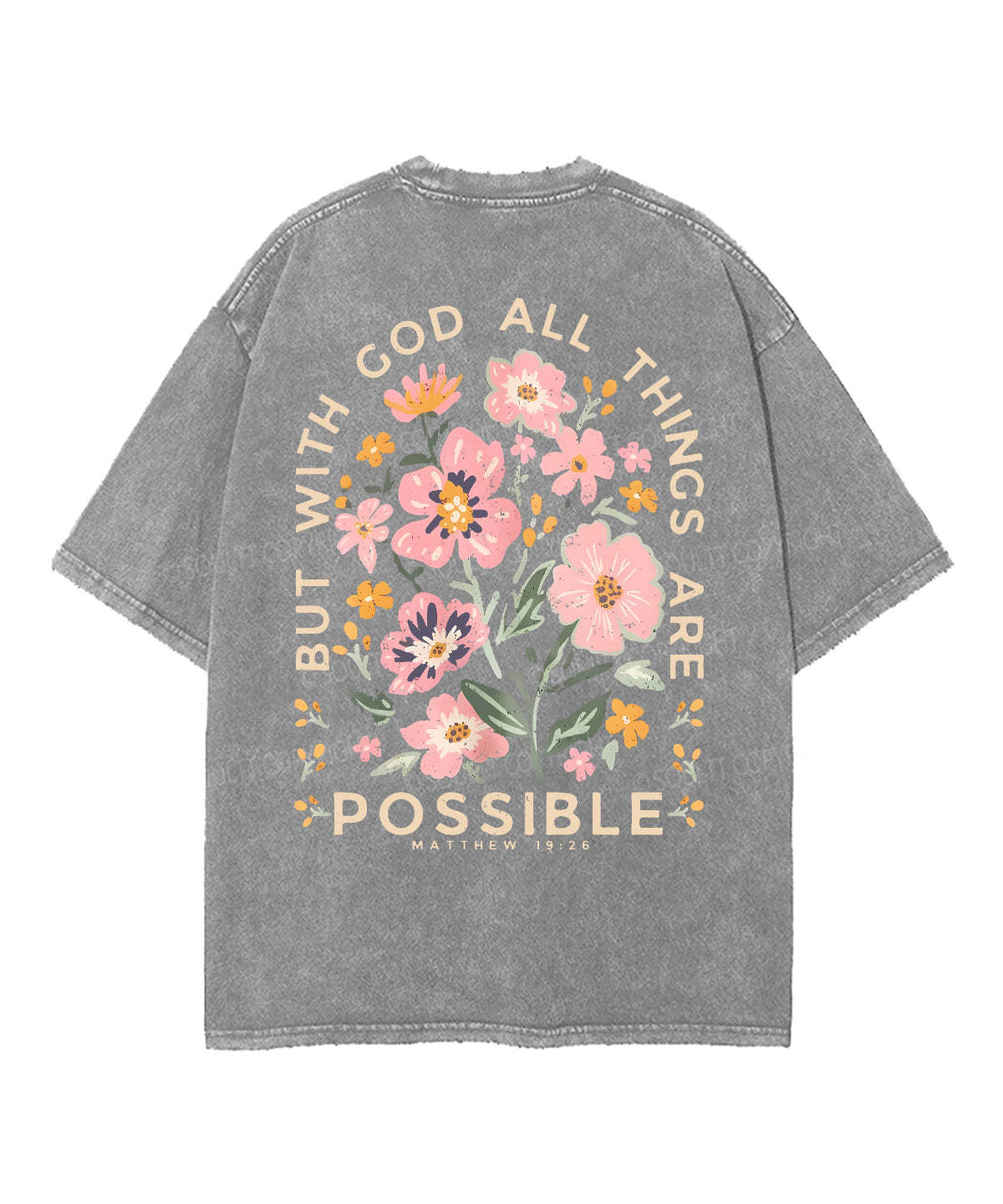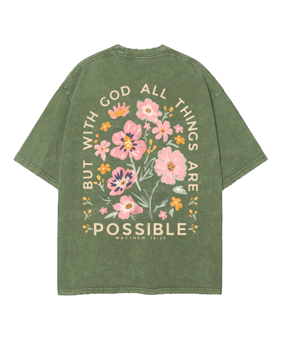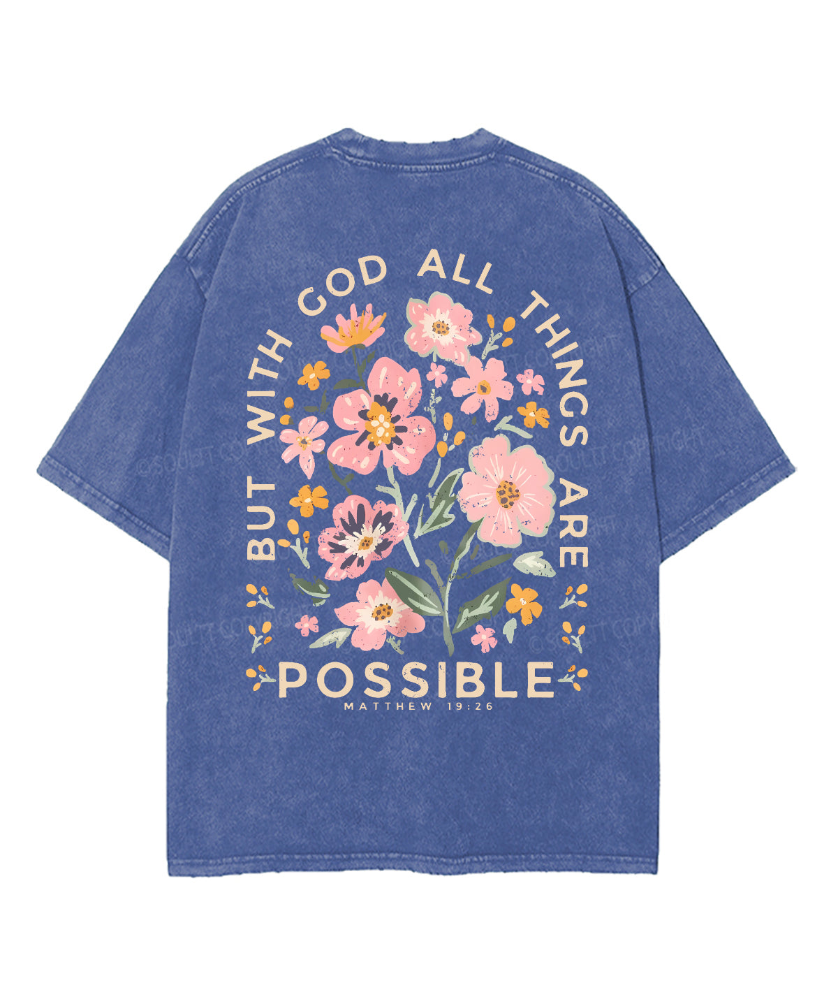 But With God All Things Are Possible Double Sided Unisex Washed Christian T-shirt