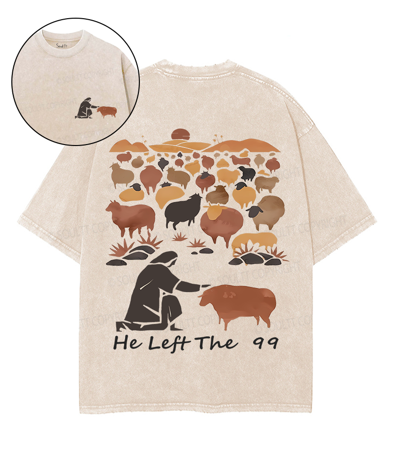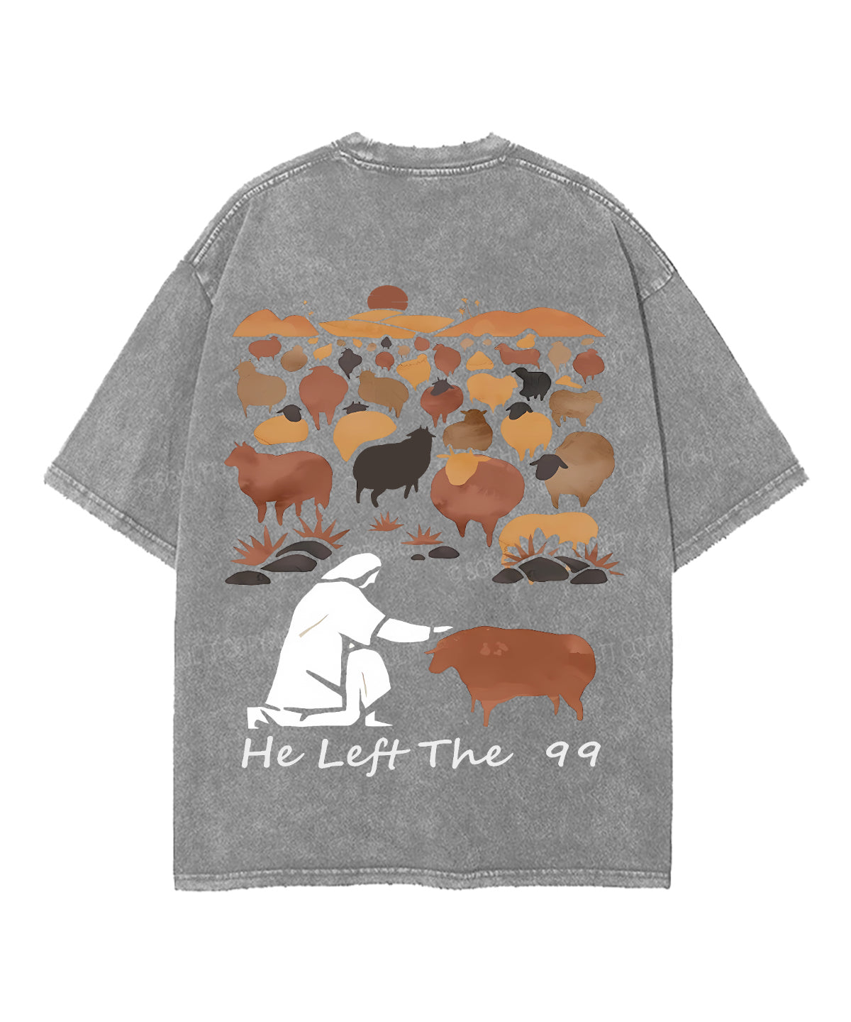He Left The 99 Double Sided Unisex Washed Christian T-shirt