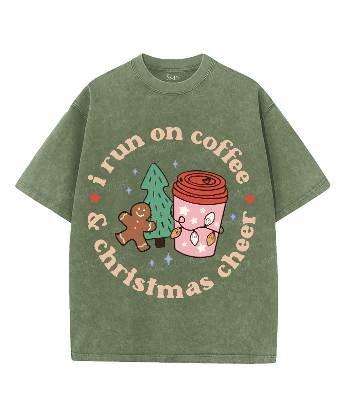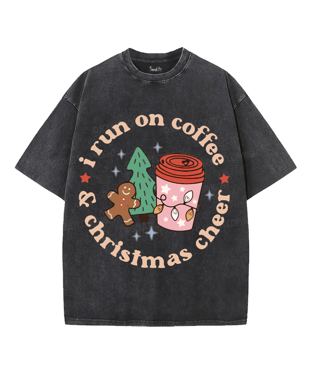 I Run Coffee Christmas Cheer fUnisex Washed Christian T-shirt