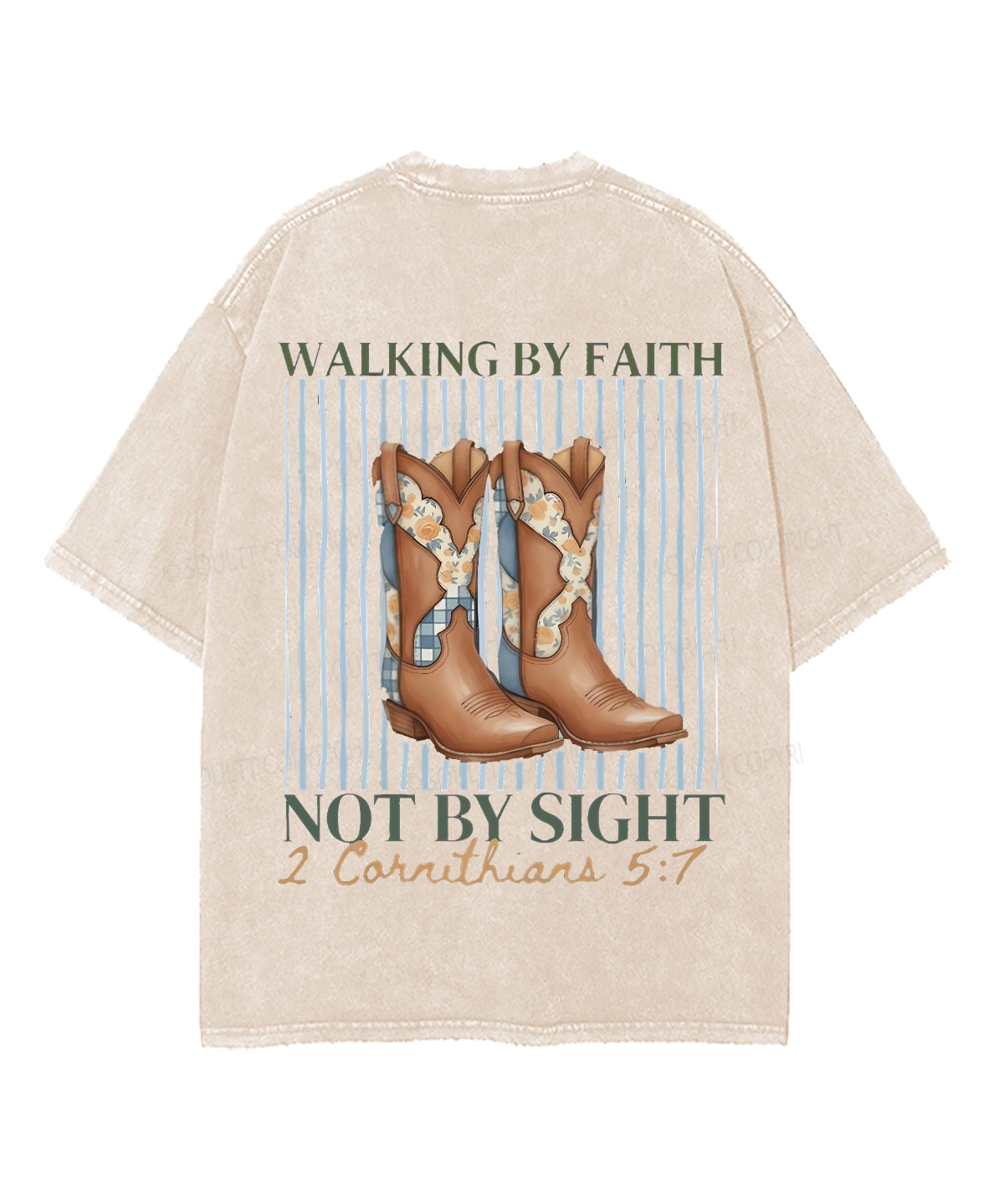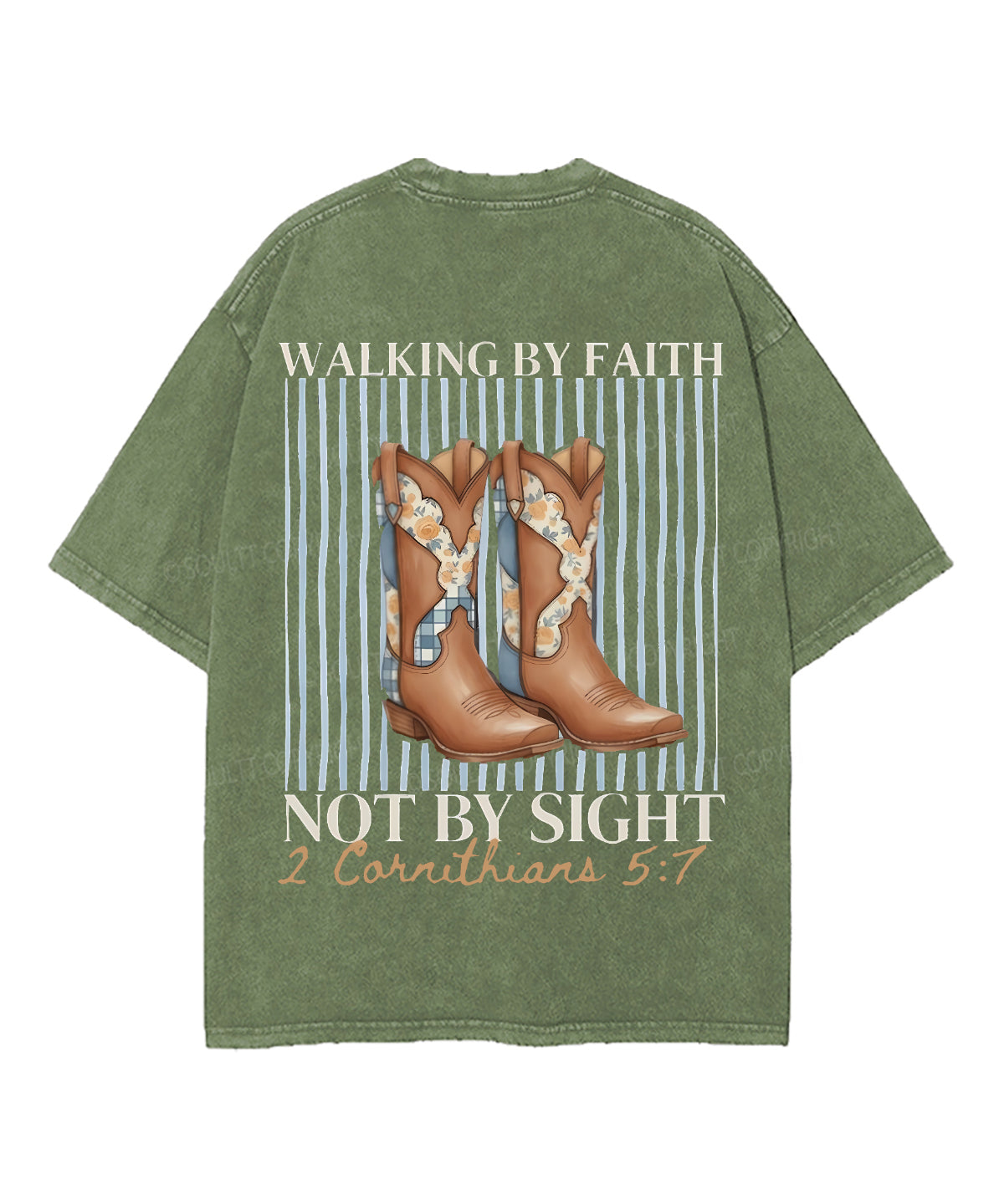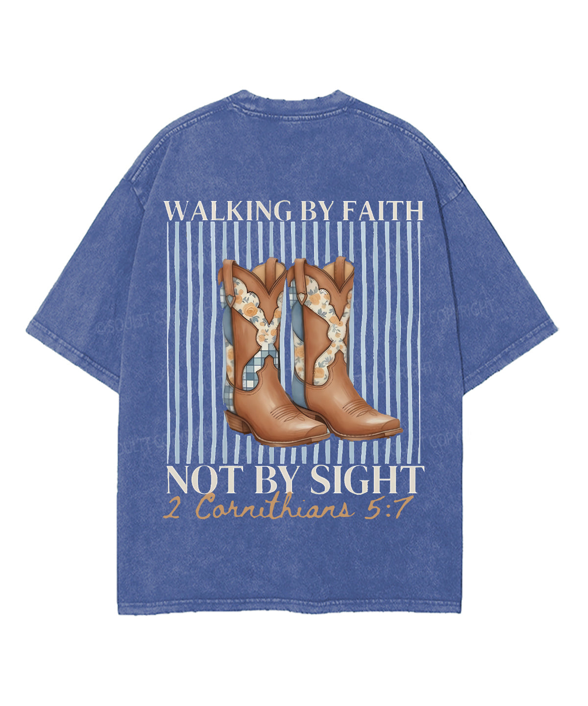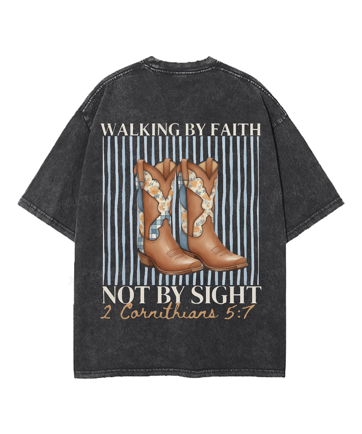 Walking By Faith Not By Sight Double Sided Unisex Washed Christian T-shirt