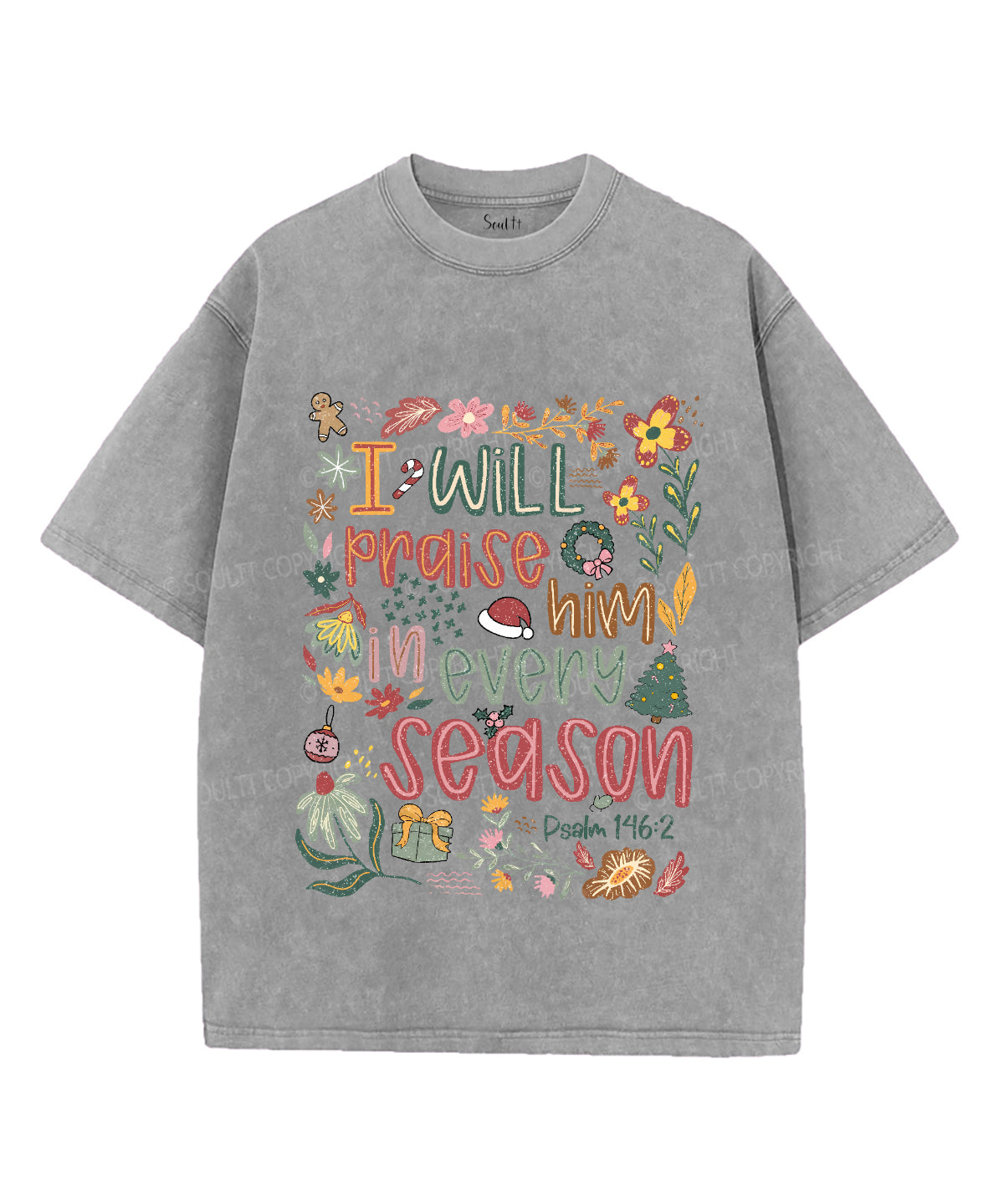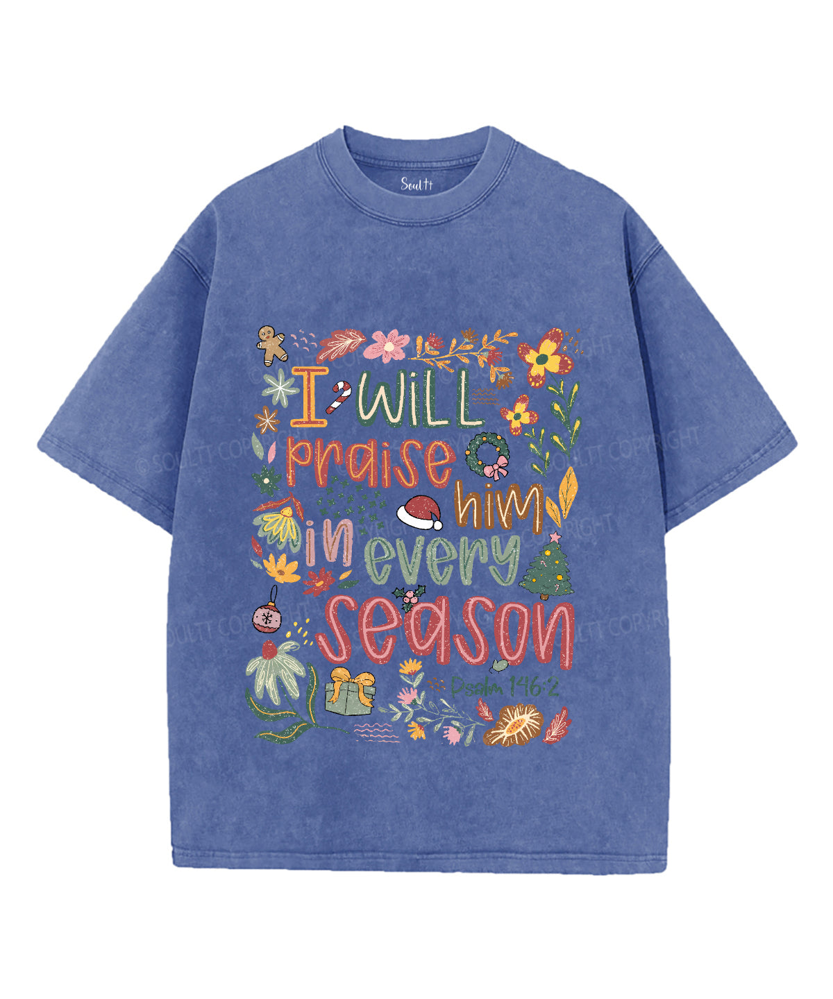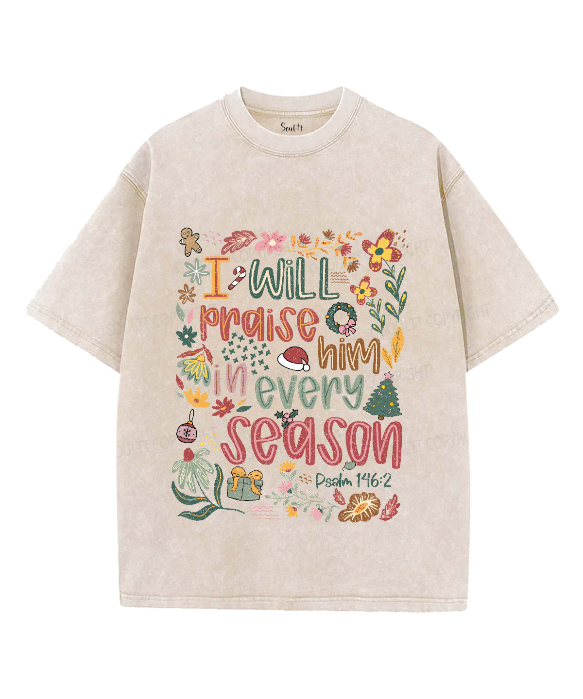 I Will Praise Him In Every Season Unisex Washed Christian T-shirt