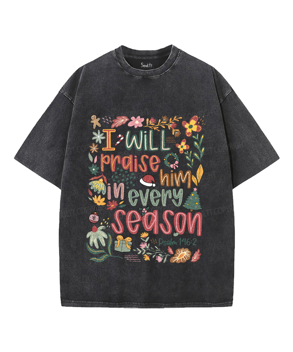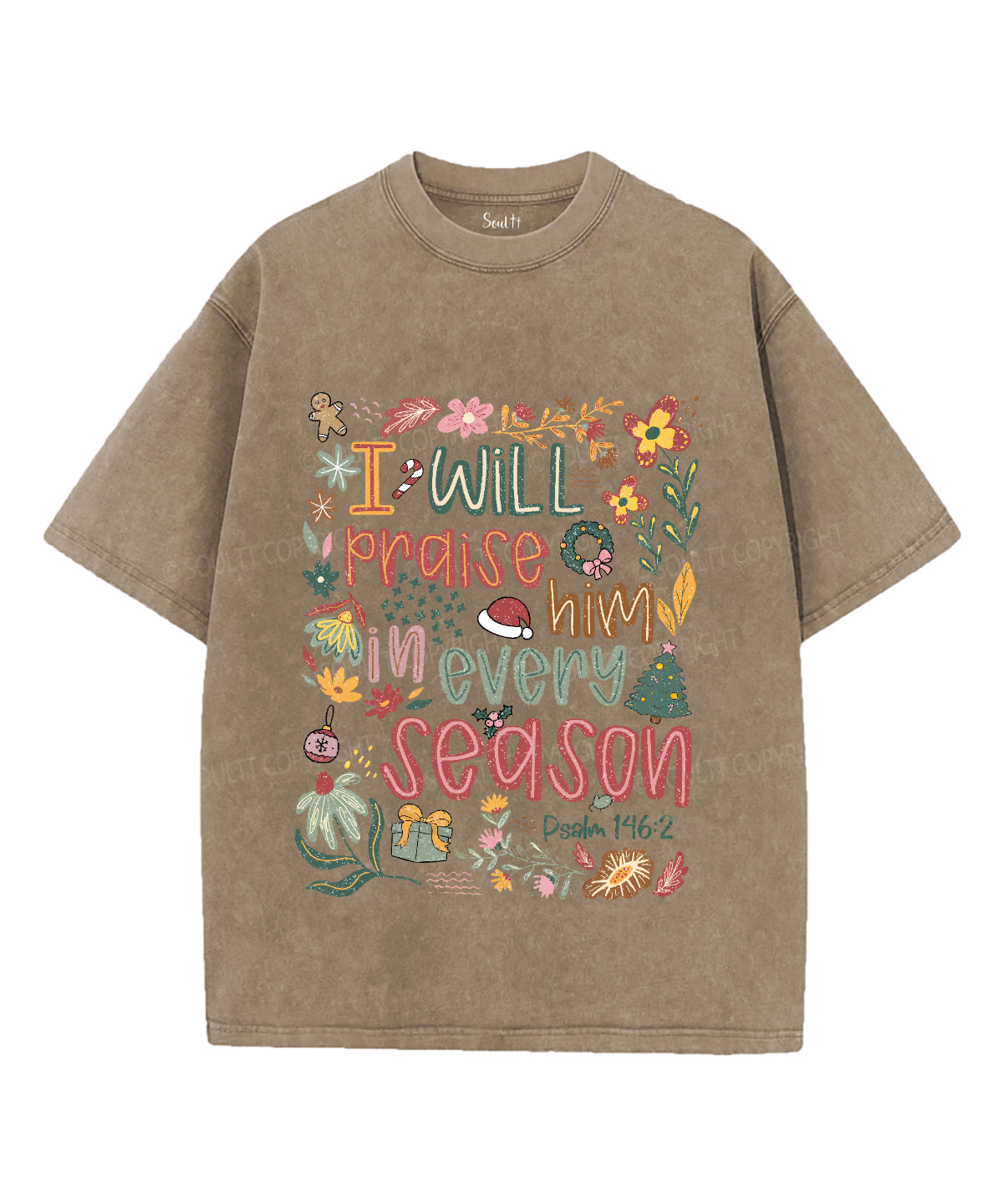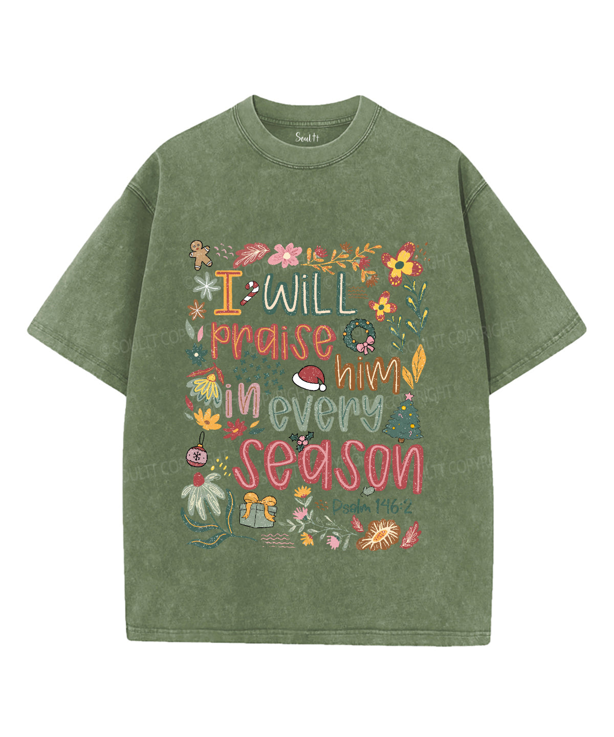 I Will Praise Him In Every Season Unisex Washed Christian T-shirt