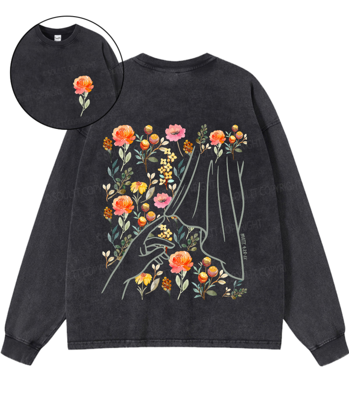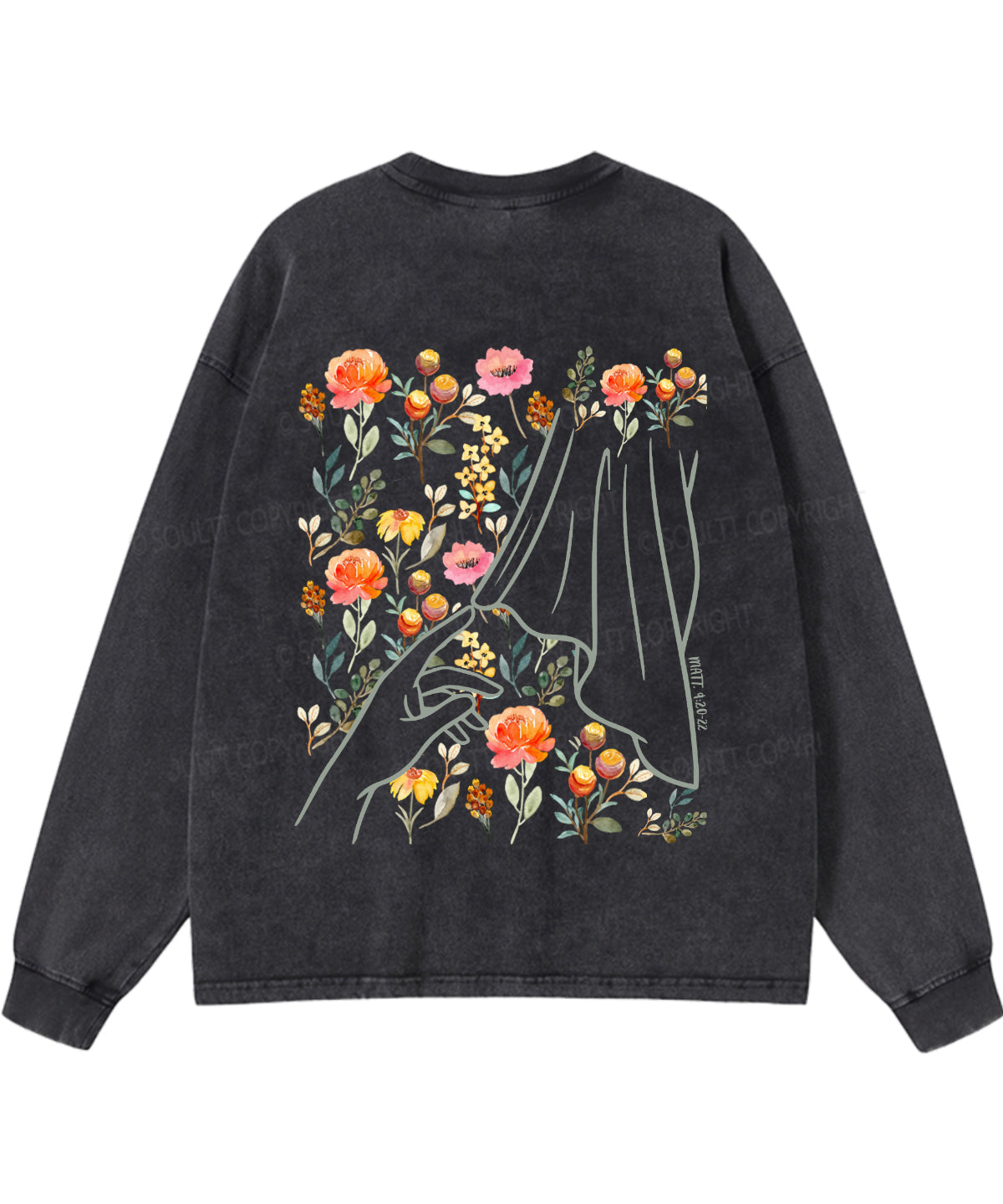 Touches Jesus Double Sided Washed Christian Long-sleeve T-shirt