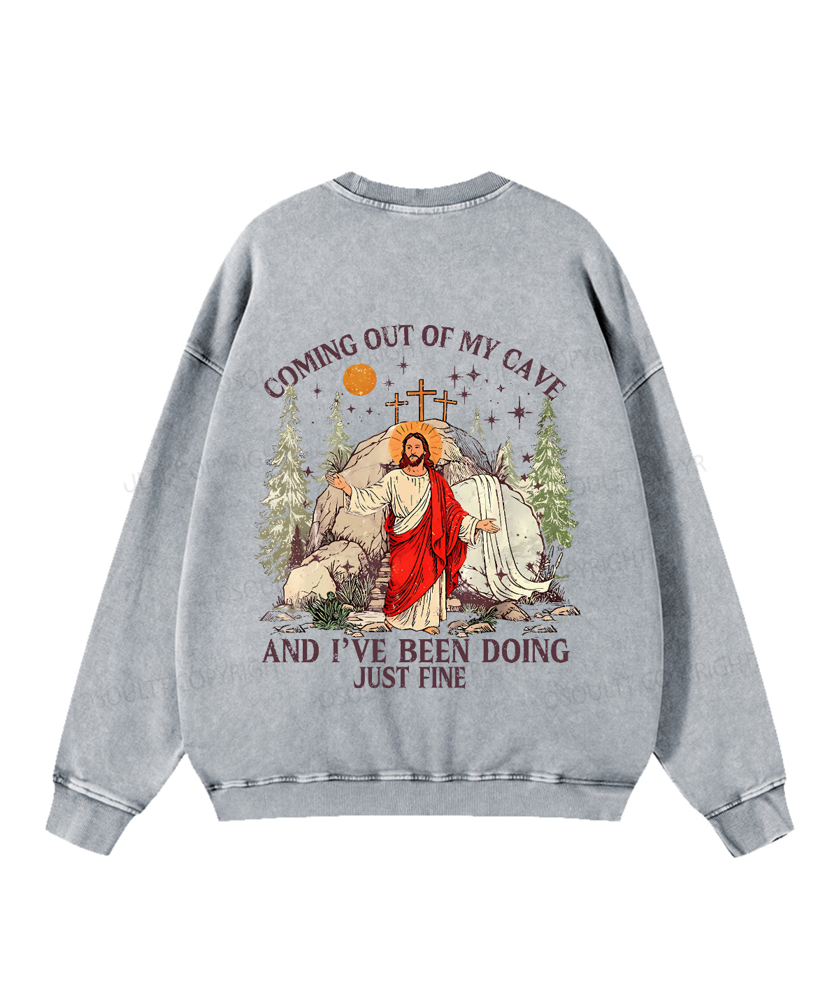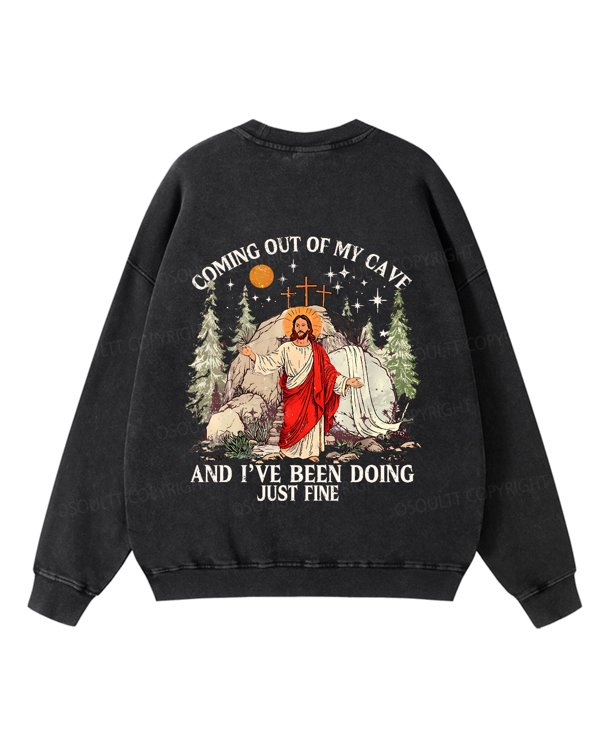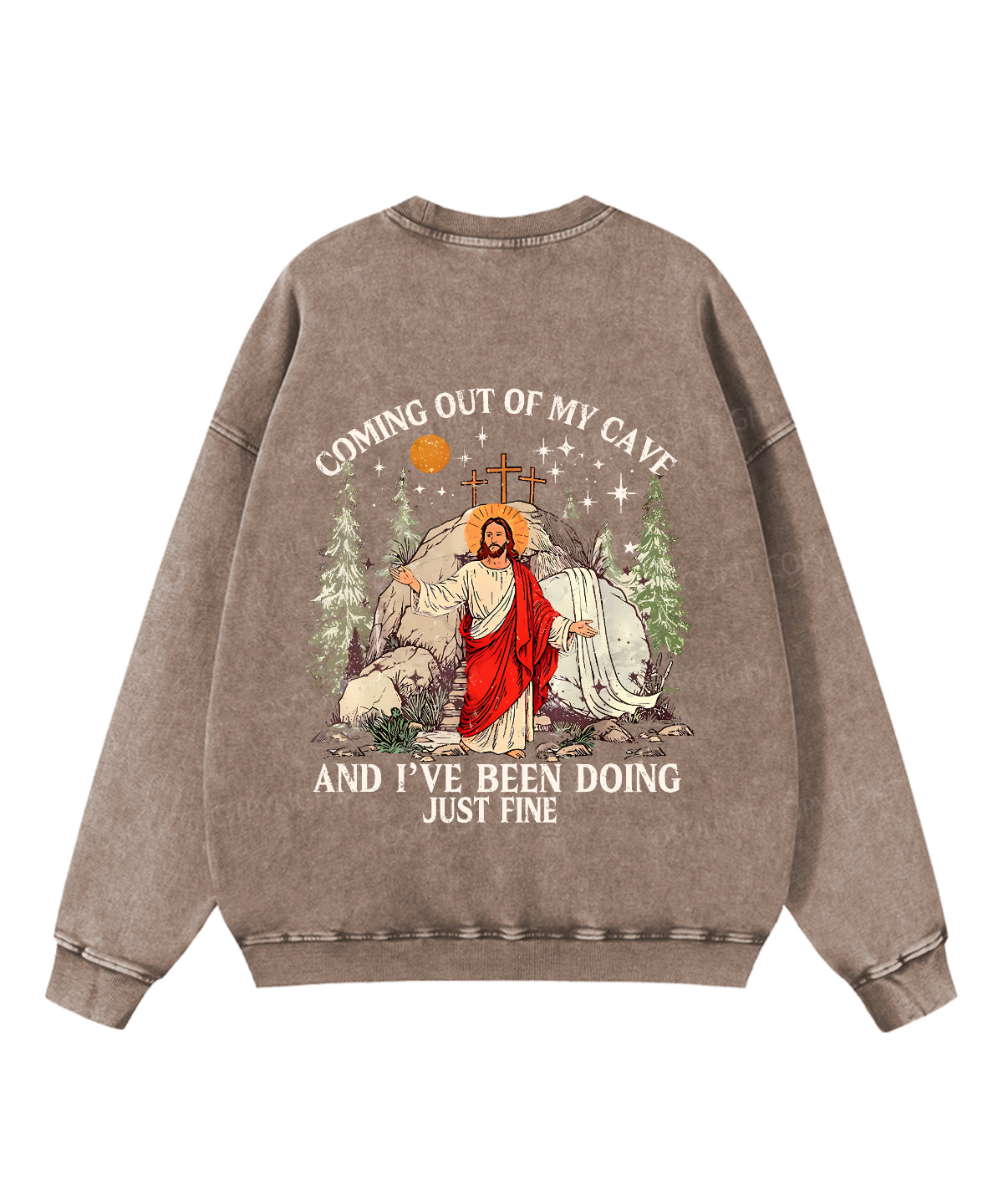 Coming Out Of My Cave And I've Been Doing Just Fine Double Sided Unisex Washed Christian Sweatshirt