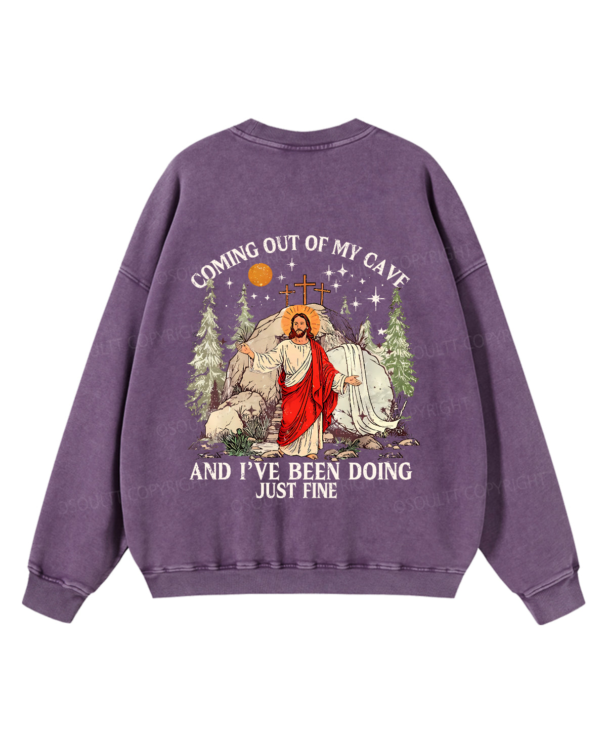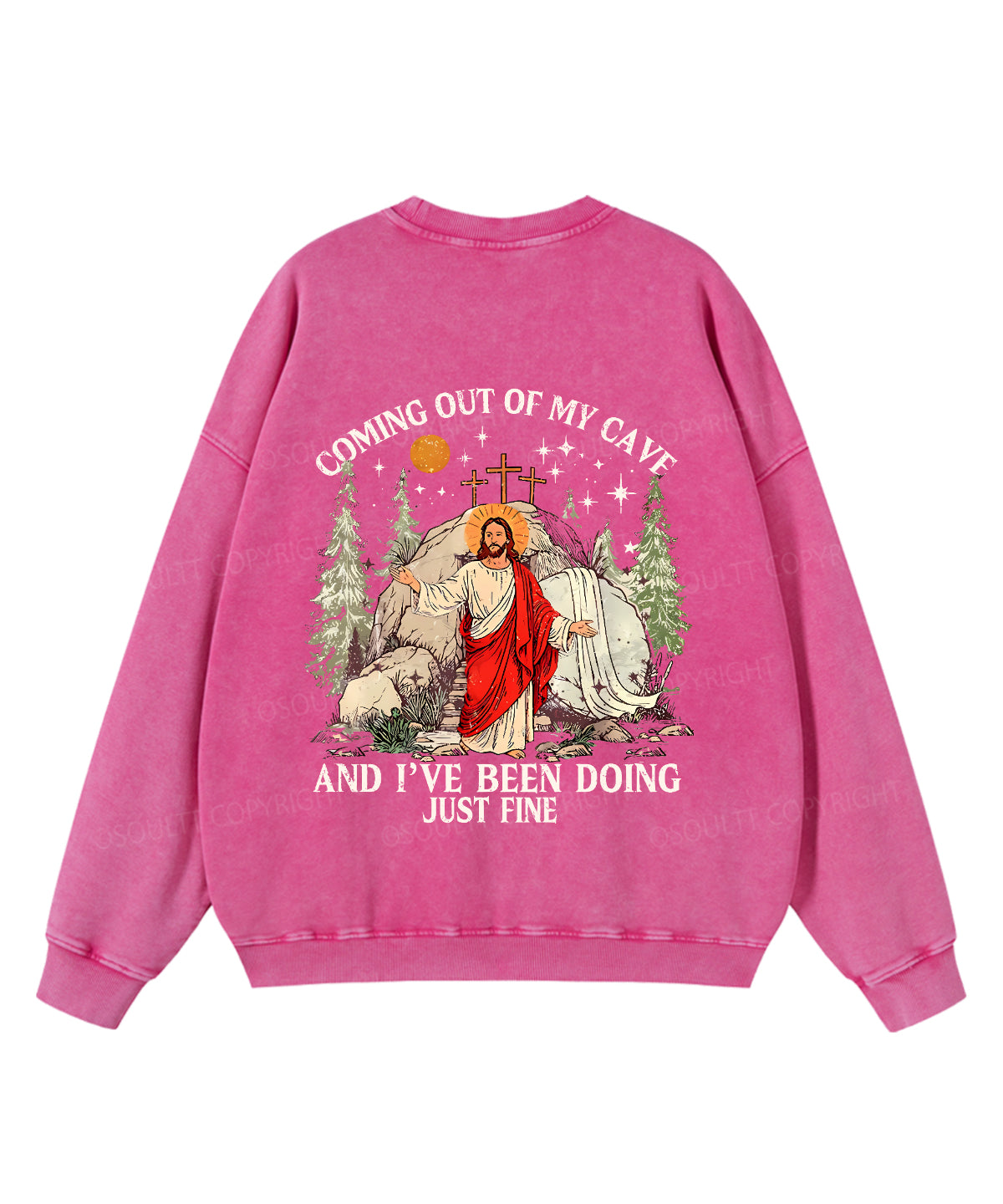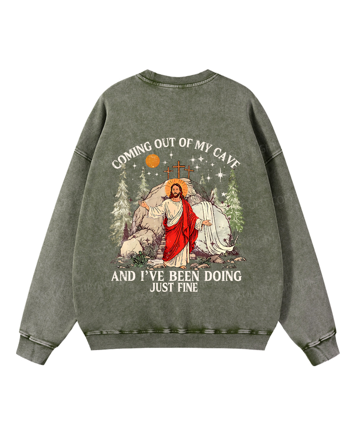 Coming Out Of My Cave And I've Been Doing Just Fine Double Sided Unisex Washed Christian Sweatshirt