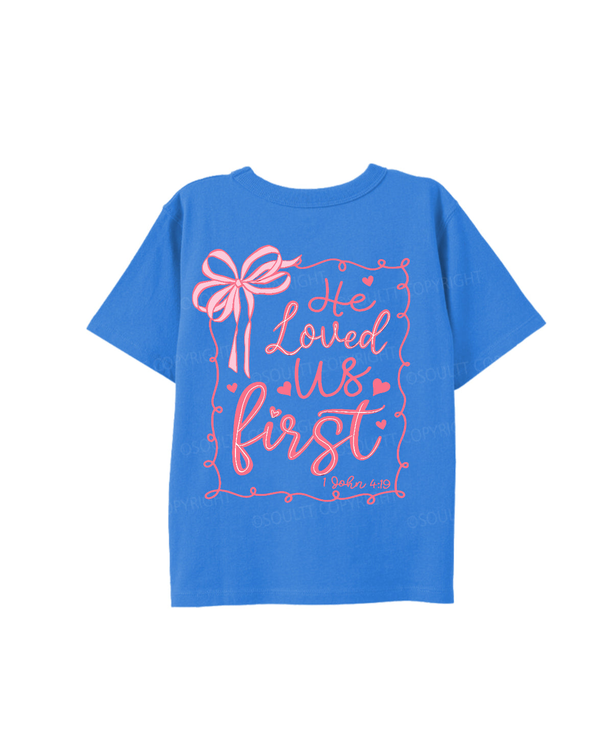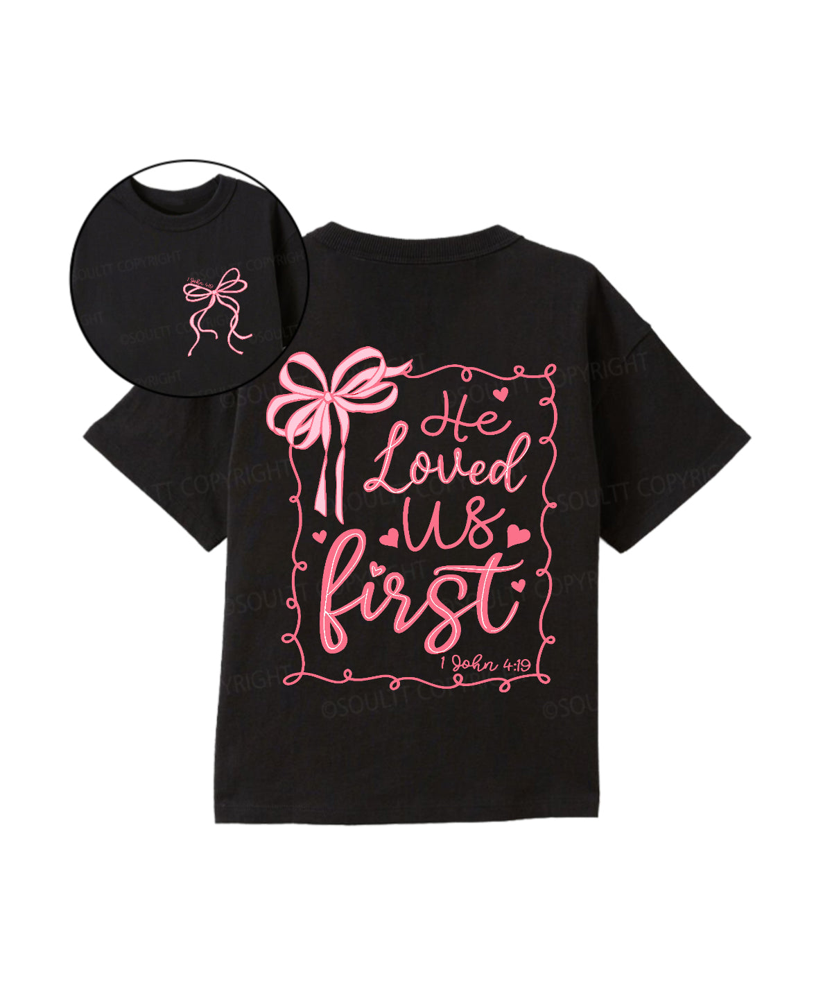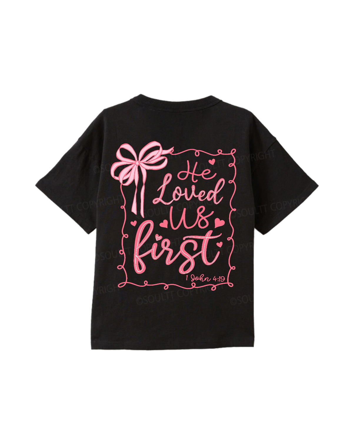 Kids He Loved Us First Double Sided UnisexCotton Christian T-shirt