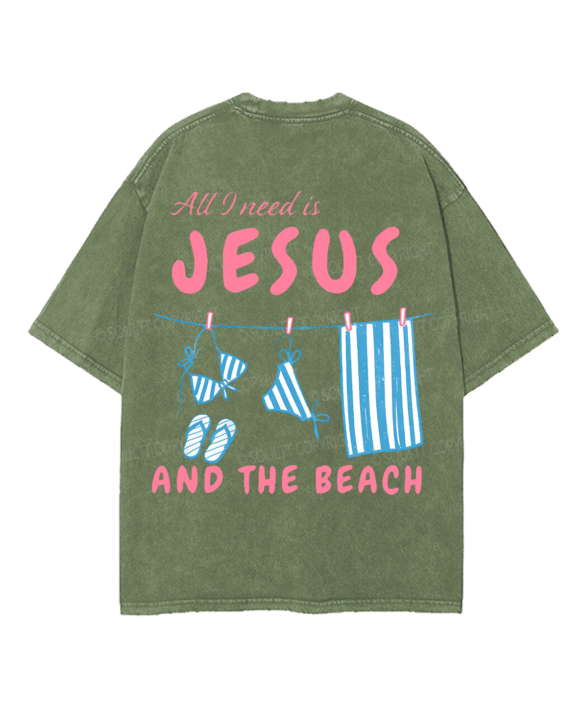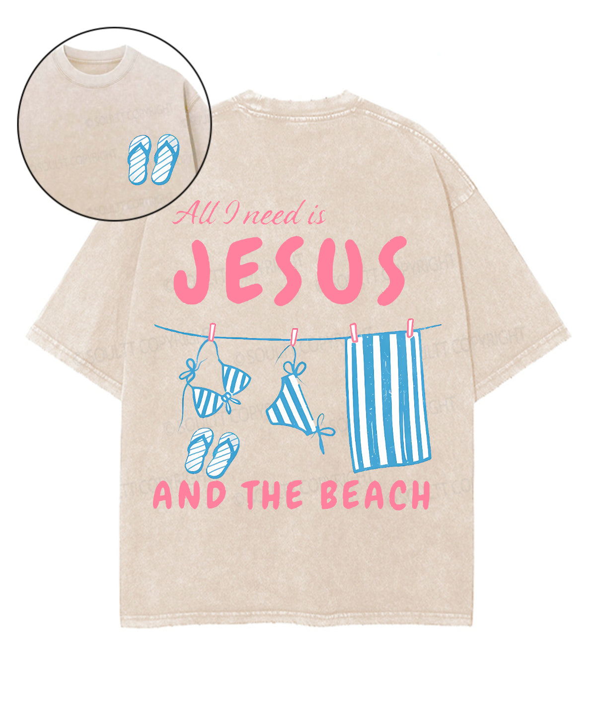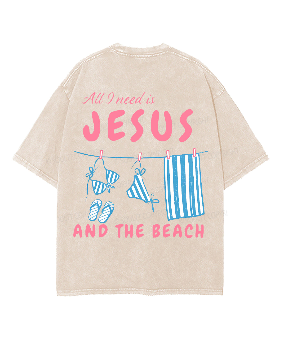All I Need Jesus And The Beach Double Sided Unisex Washed Christian T-shirt