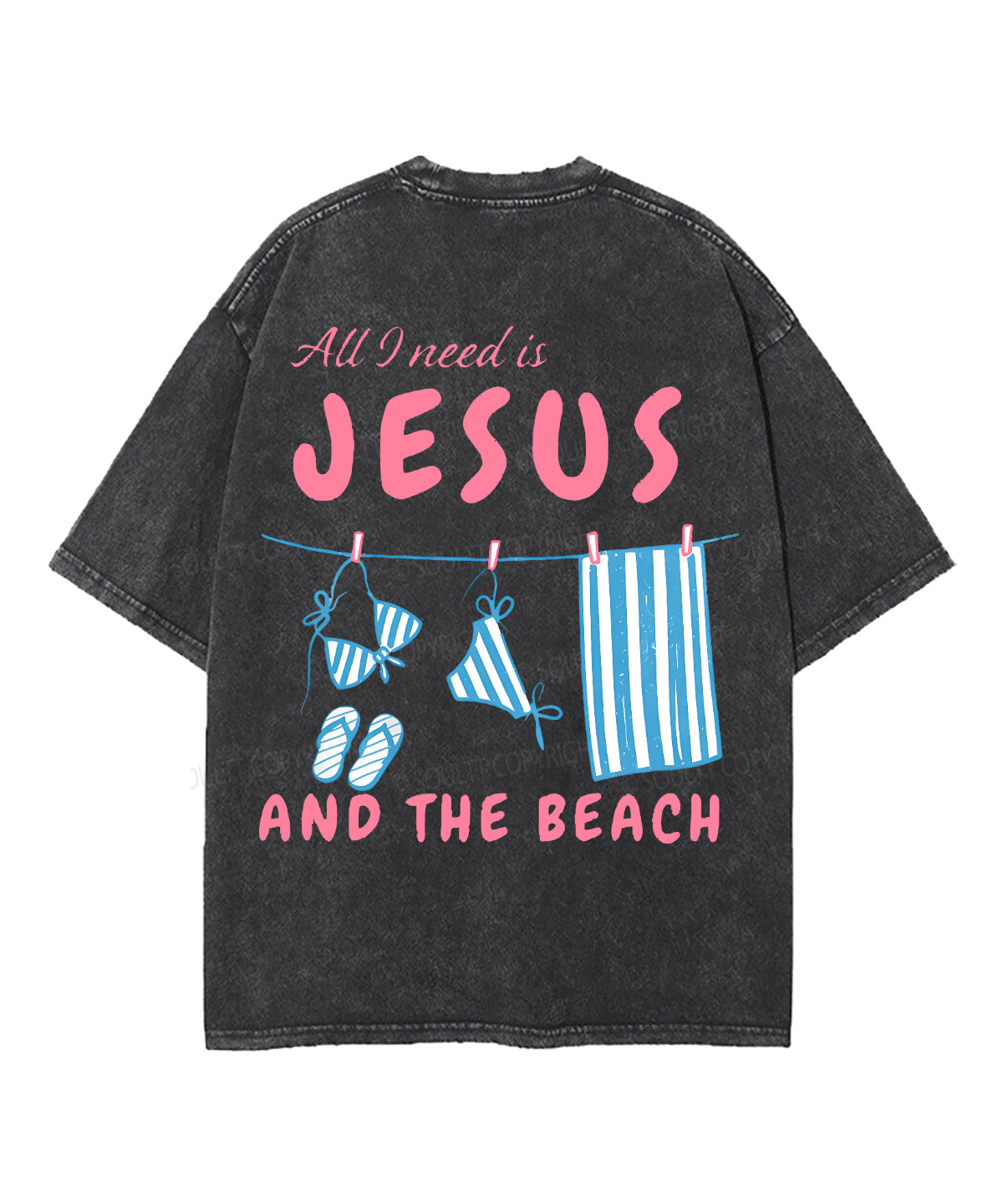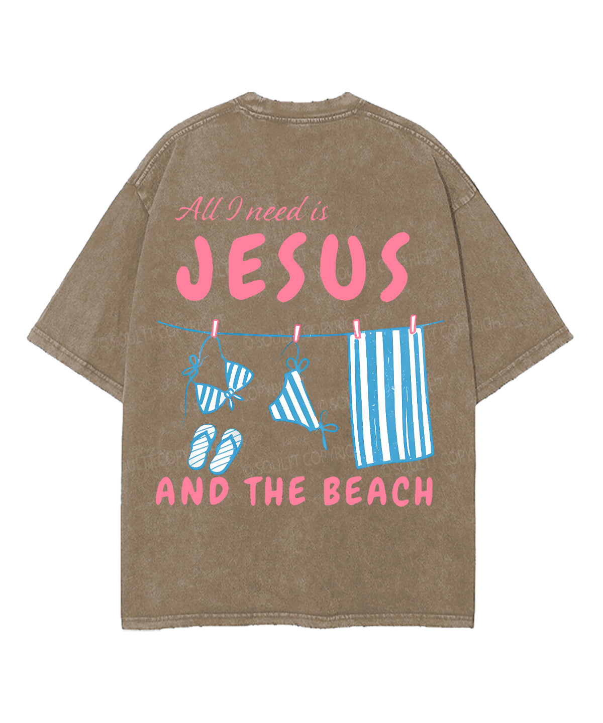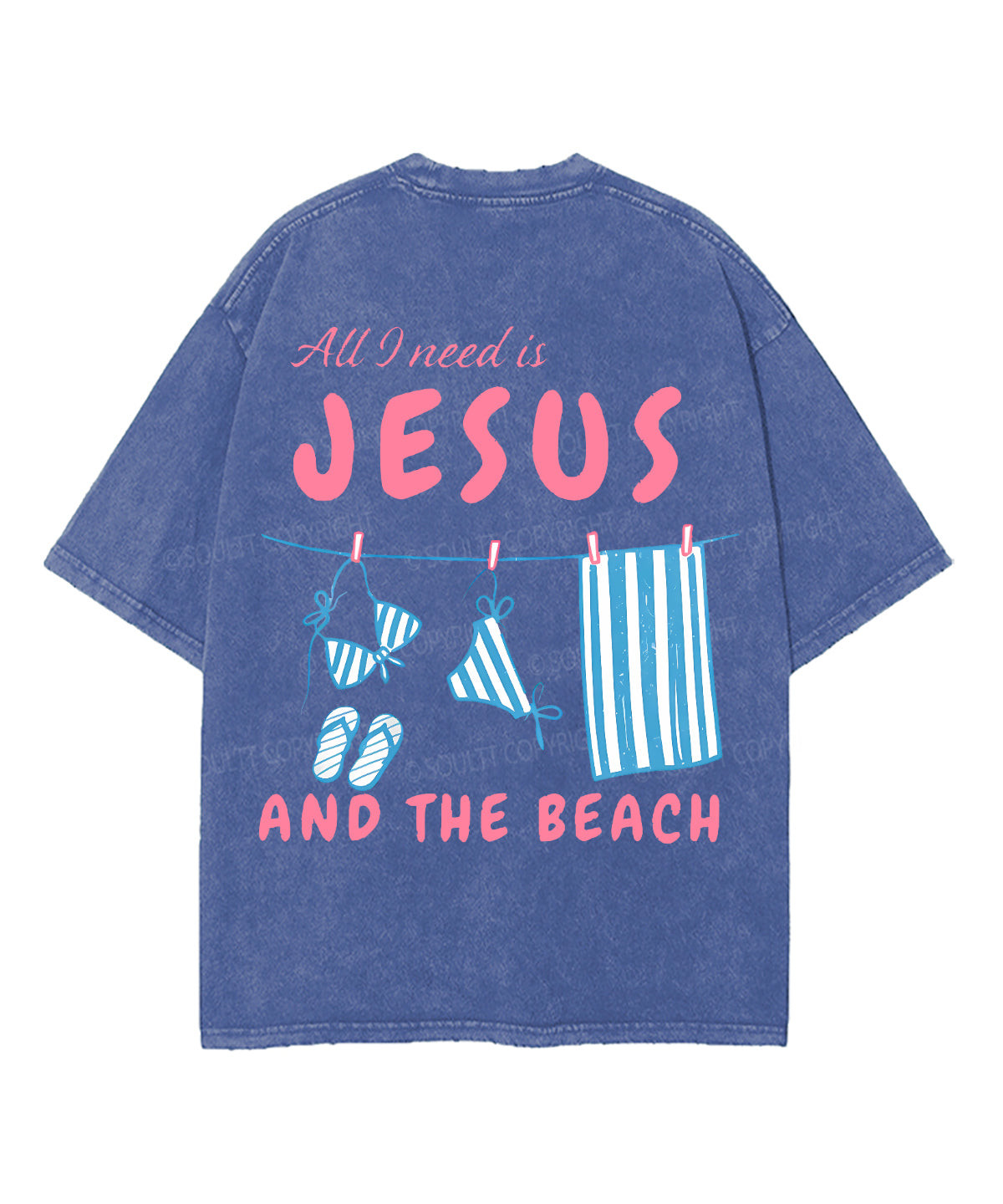 All I Need Jesus And The Beach Double Sided Unisex Washed Christian T-shirt