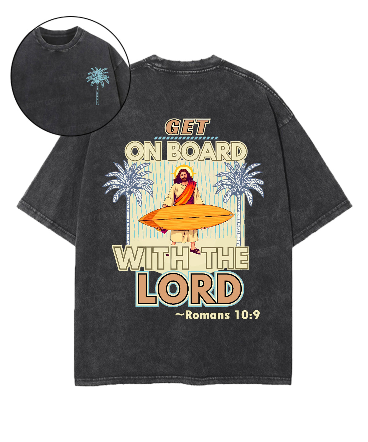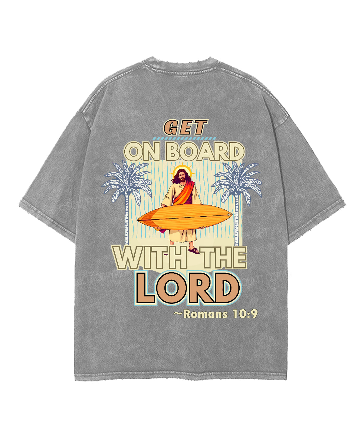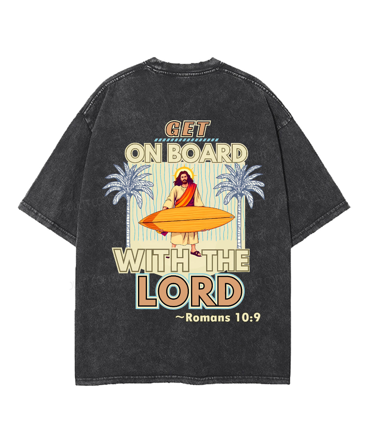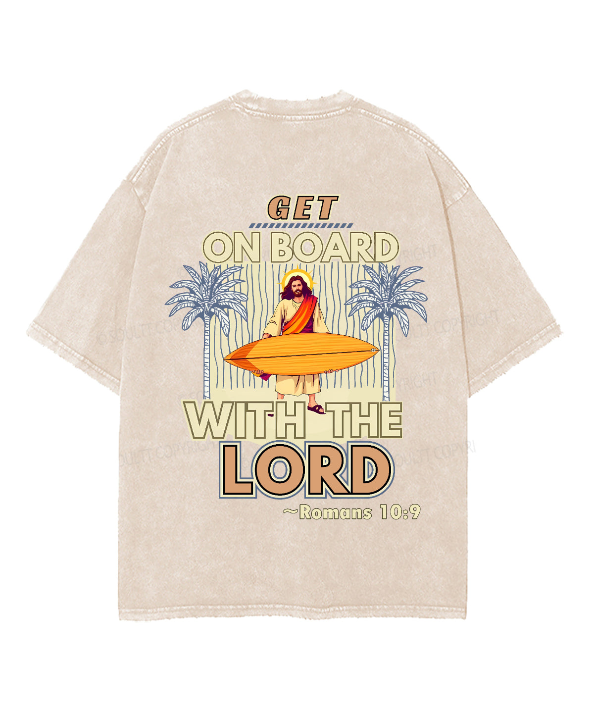 Get On Board With The Lord Double Sided Unisex Washed Christian T-shirt