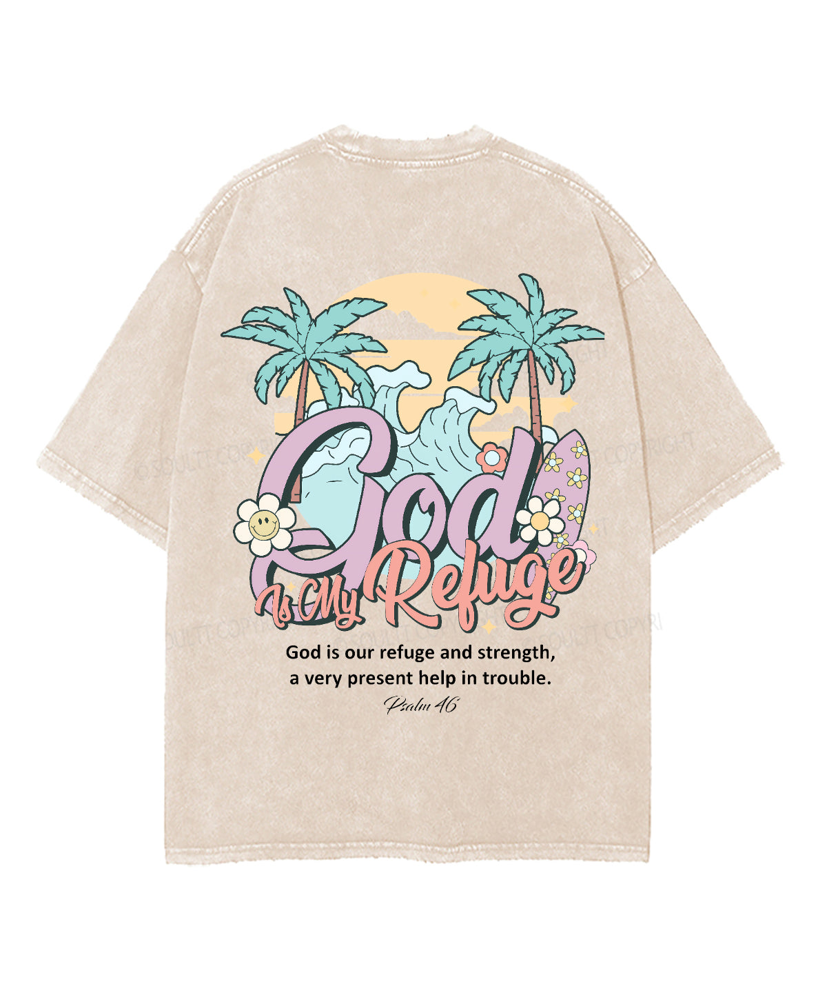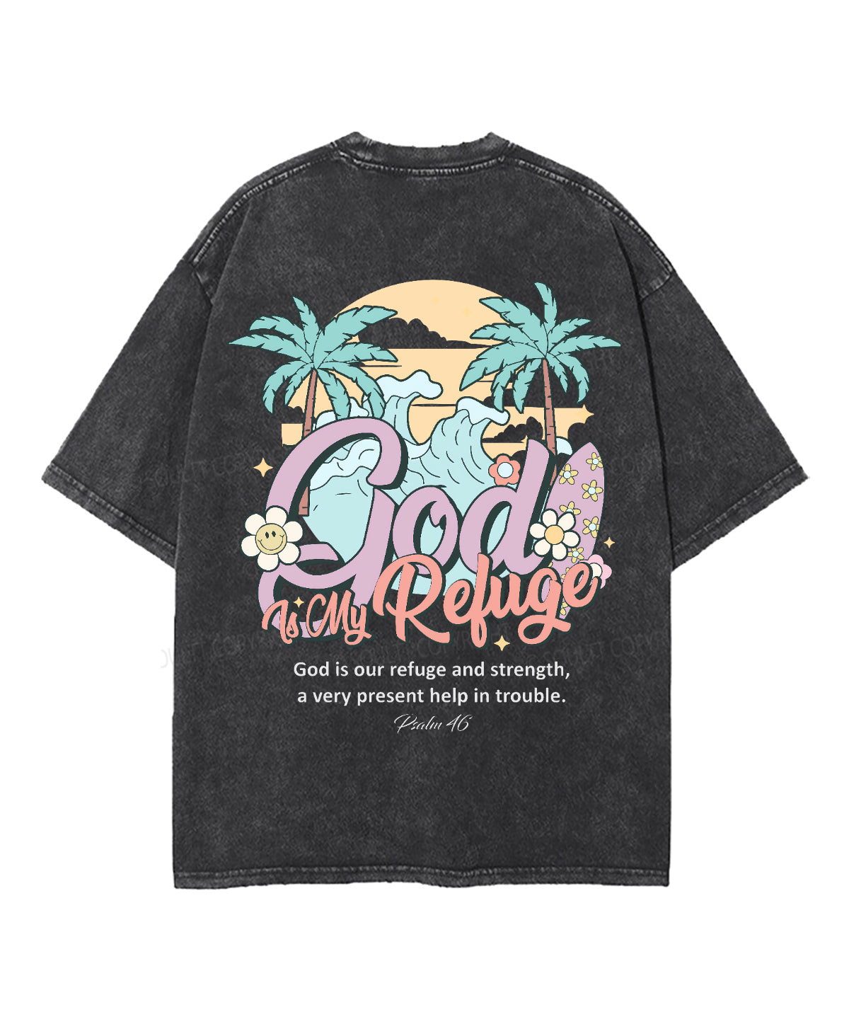God Is My Refuge Double Sided Unisex Washed Christian T-shirt
