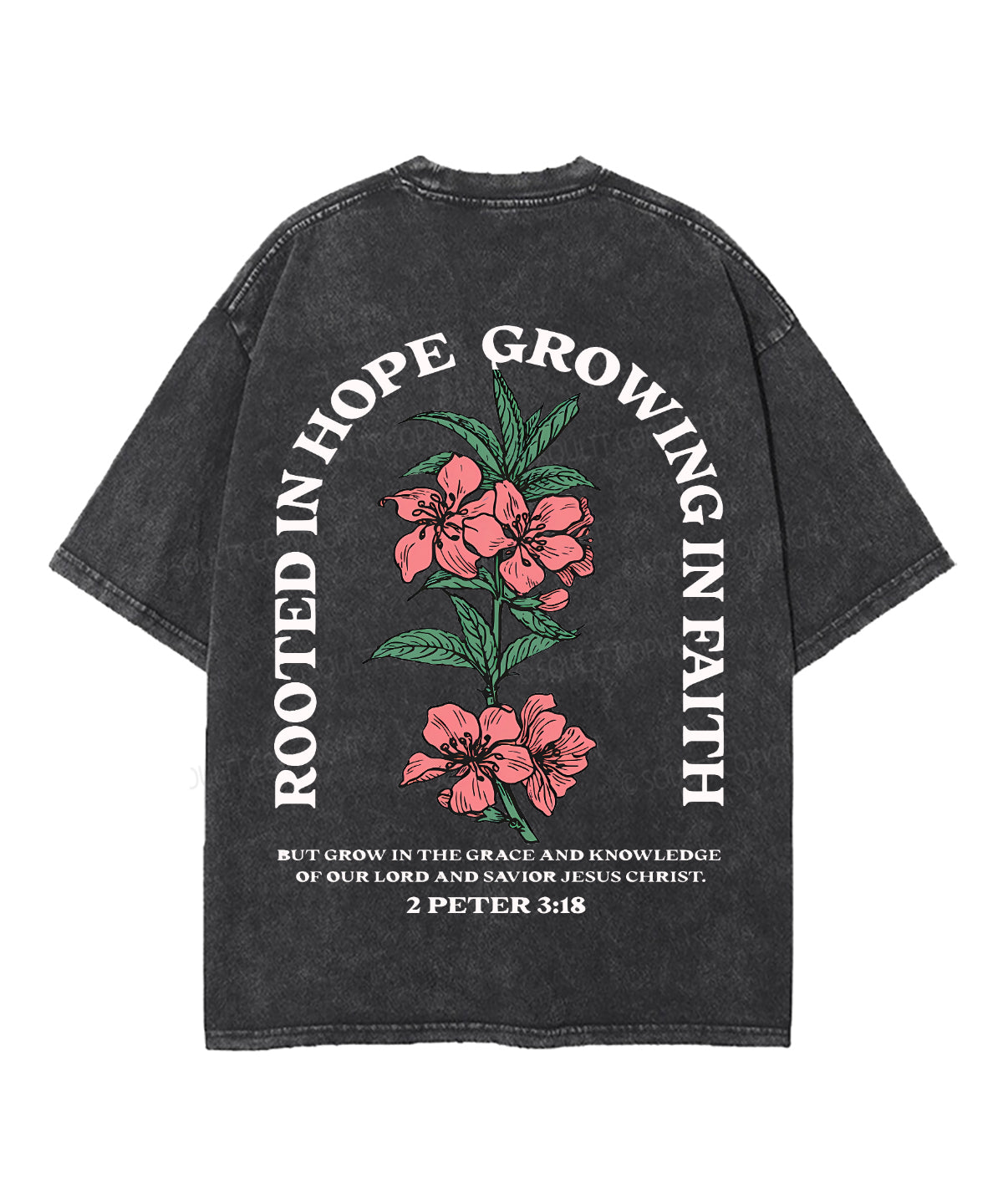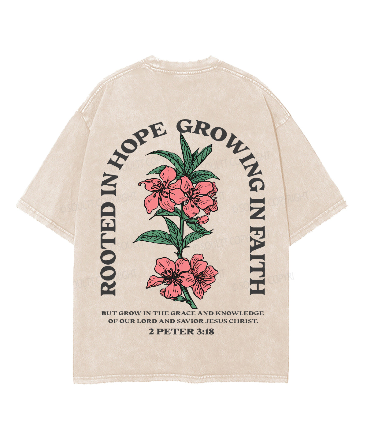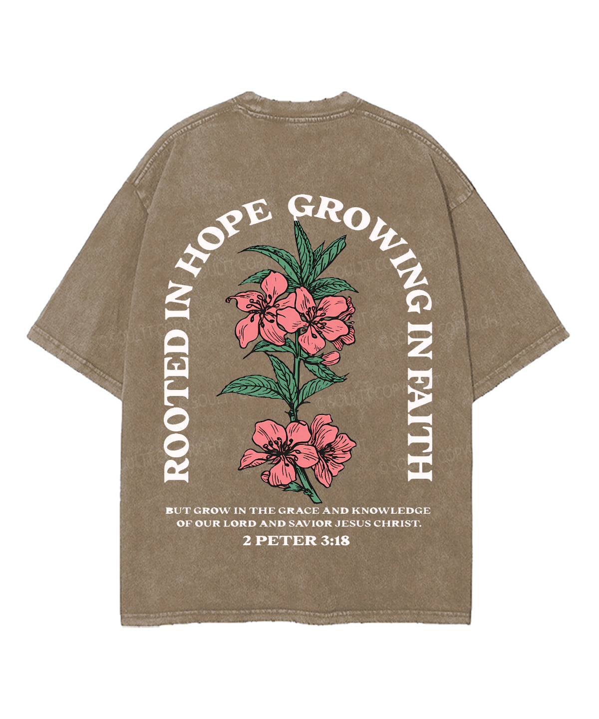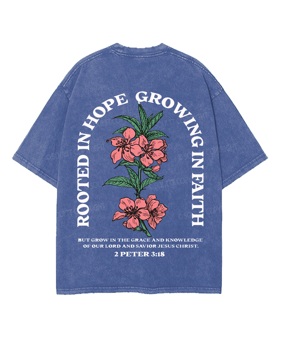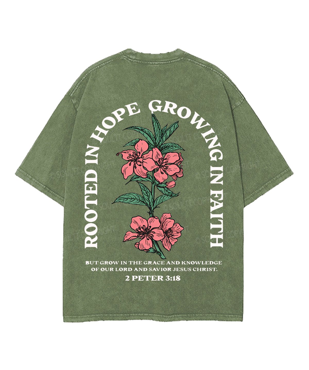 Rooted In Hope Growing In Faith Double Sided Unisex Washed Christian T-shirt